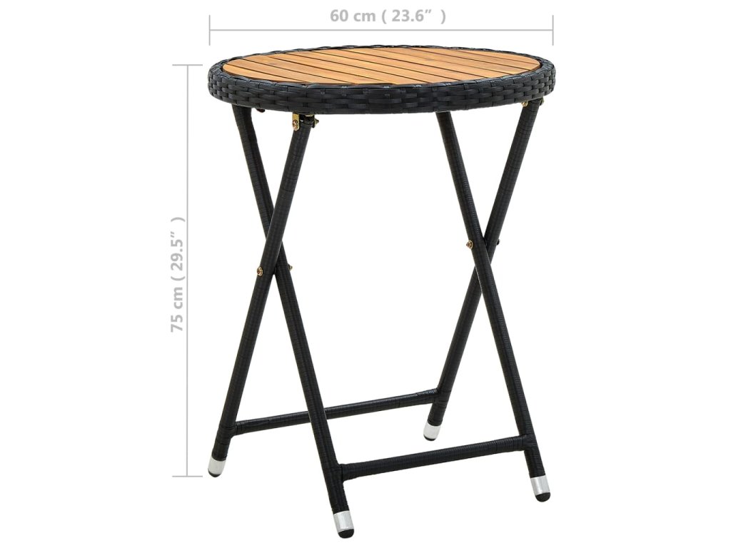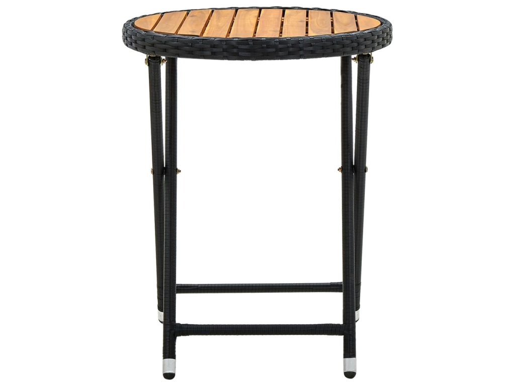 Tento stôl má práškový nástrek z oceľového rámu potiahnutého PE ratanom odolným voči poveternostným vplyvom s UV ochranou, a zaisťuje roky vonkajšieho používania. Stolová doska je vyrobená zo spevneného akáciového dreva, je trvácna a pevná. Ak sa stolík nepoužíva, dá sa ľahko zložiť, čím ušetríte miesto.