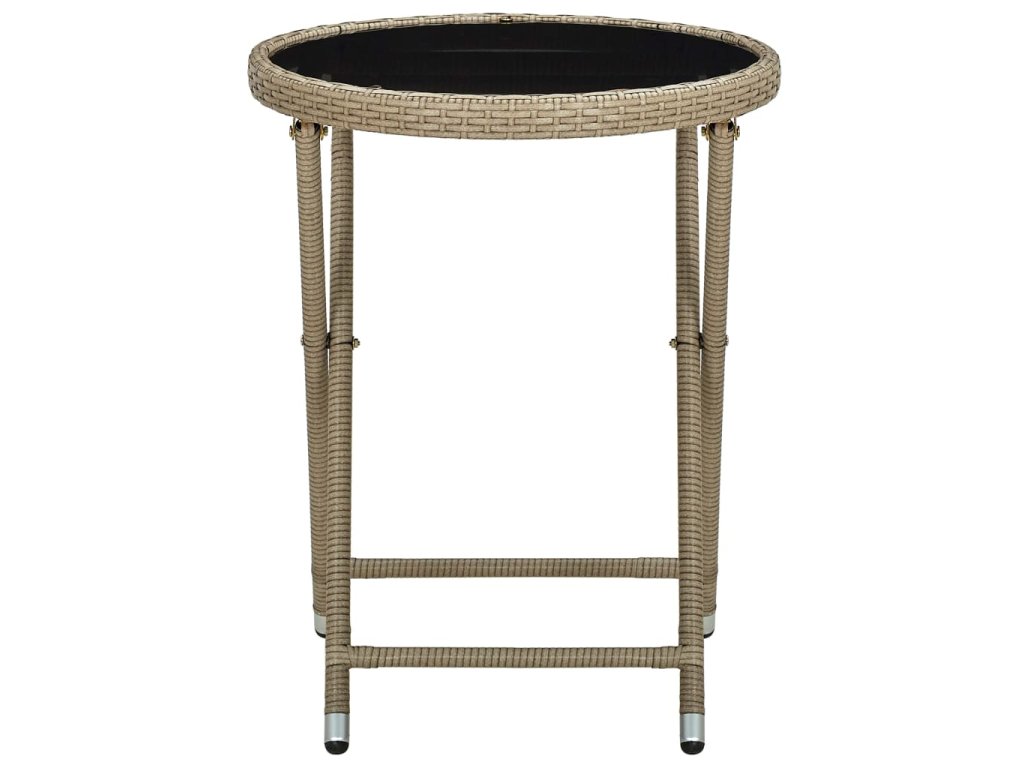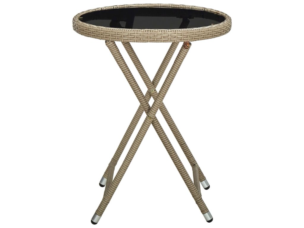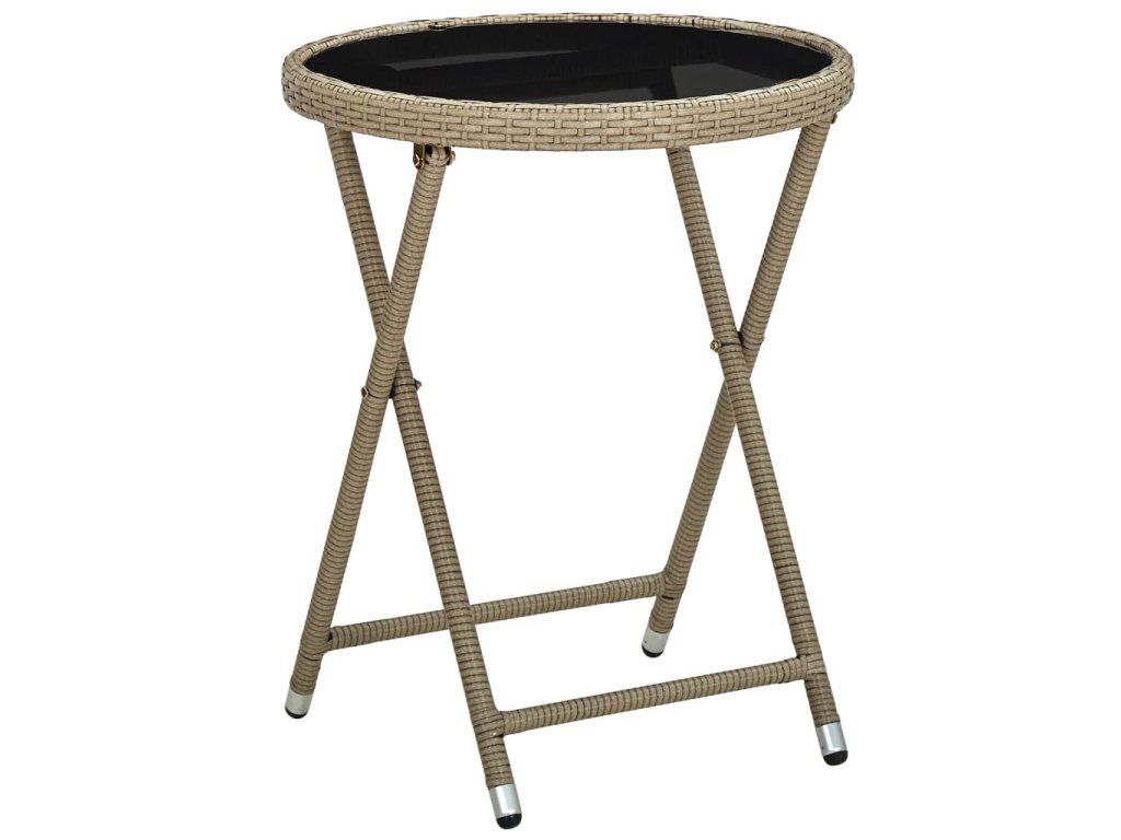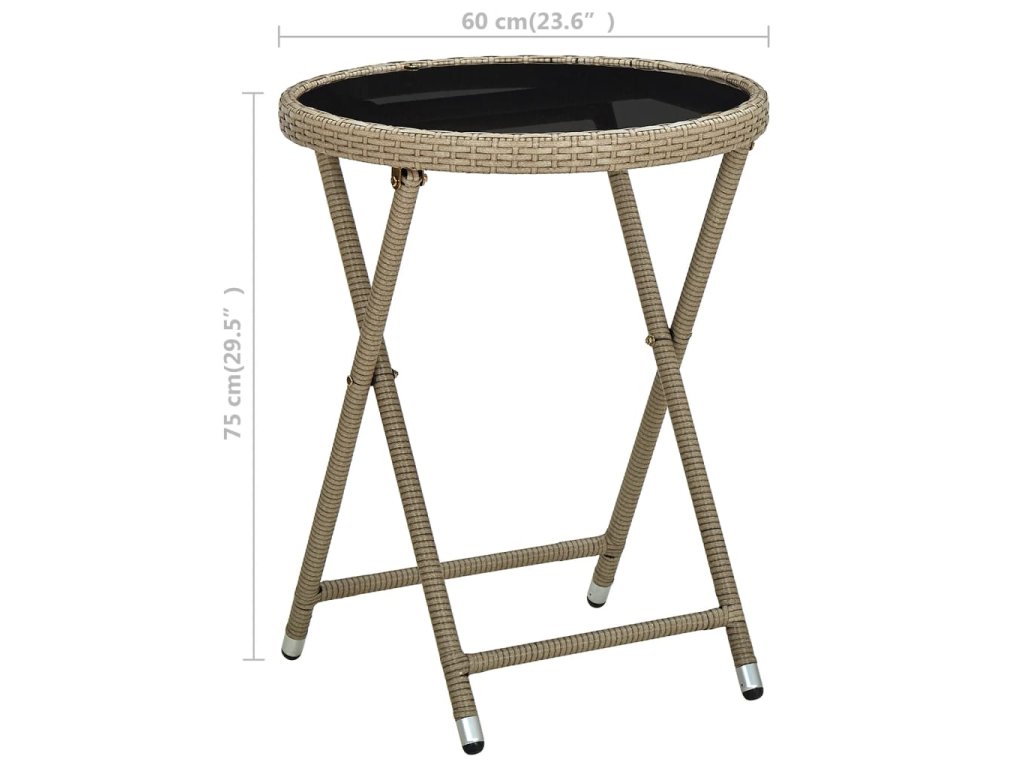 Tento vonkajší stôl vyrobený z PE ratanu odolného voči poveternostným vplyvom sa ľahko čistí, je odolný voči opotrebovaniu a je vhodný na každodenné použitie. Vďaka oceľovému rámu s práškovanou povrchovou úpravou je veľmi odolný a trvácny. Robustná doska je vyrobená z tvrdeného skla. Ľahko sa čistí vlhkou handričkou a je ideálny na odkladanie nápojov a jedál. Vďaka sklopnému dizajnu sa dá ľahko zložiť, aby ste ušetrili miesto, keď ho nepoužívate.