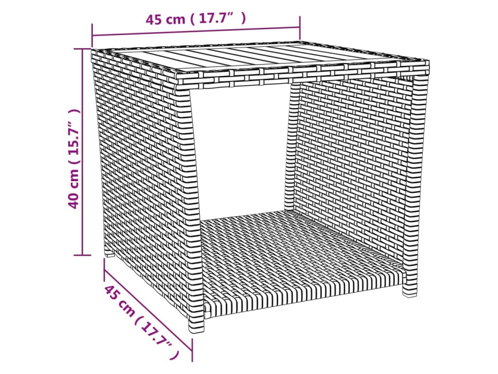 - Konštrukcia odolná voči vode: Tento bočný stolík je vyrobený z materiálu odolného voči vode a vydrží vlhkosť a daždivé počasie. V prípade potreby sa dá ľahko vyčistiť vlhkou handričkou.