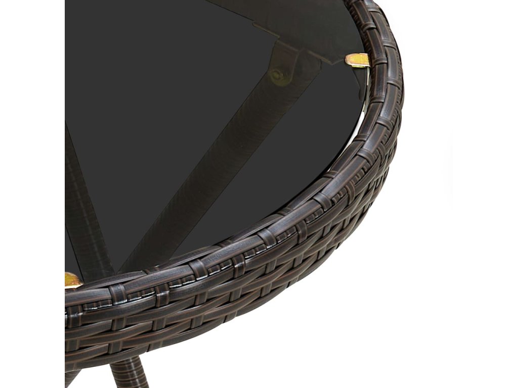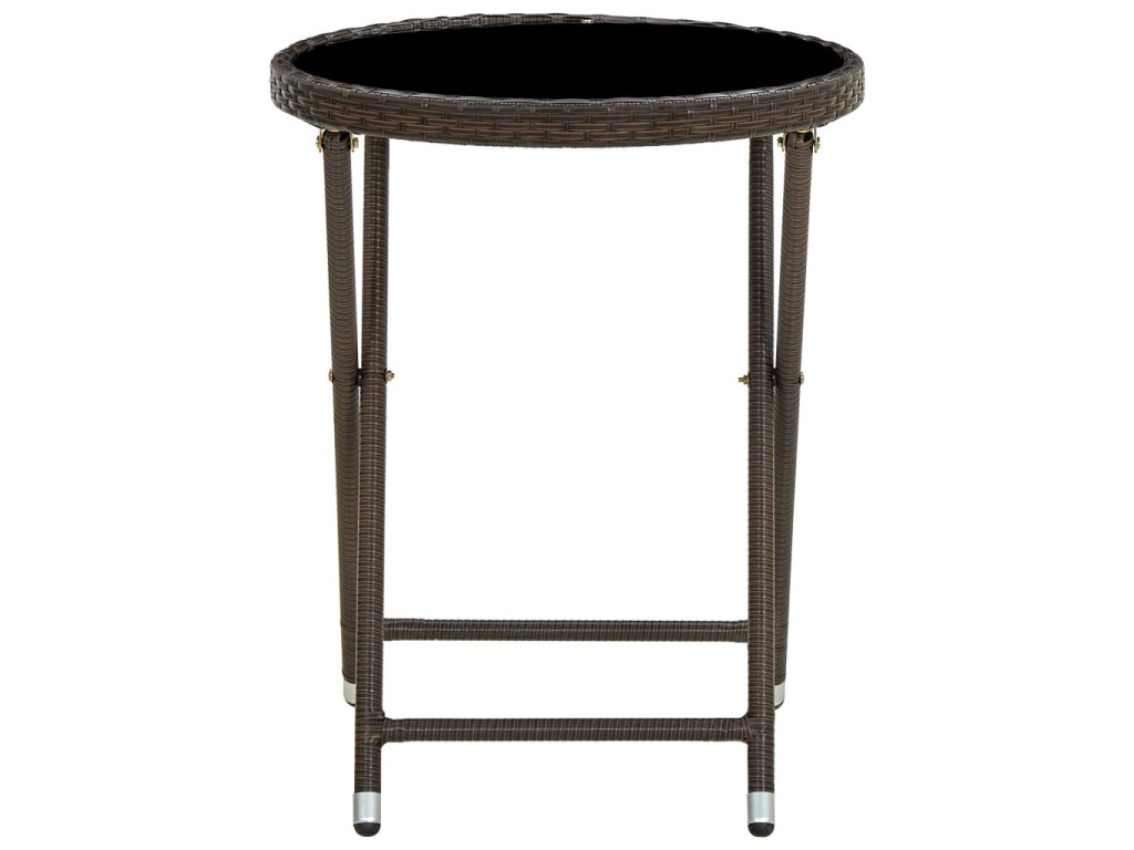 Tento vonkajší stôl vyrobený z PE ratanu odolného voči poveternostným vplyvom sa ľahko čistí, je odolný voči opotrebovaniu a je vhodný na každodenné použitie. Vďaka oceľovému rámu s práškovanou povrchovou úpravou je veľmi odolný a trvácny. Robustná doska je vyrobená z tvrdeného skla. Ľahko sa čistí vlhkou handričkou a je ideálny na odkladanie nápojov a jedál. Vďaka sklopnému dizajnu sa dá ľahko zložiť, aby ste ušetrili miesto, keď ho nepoužívate.