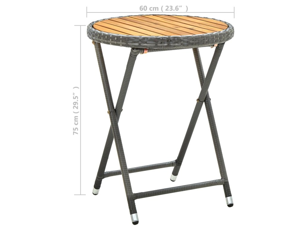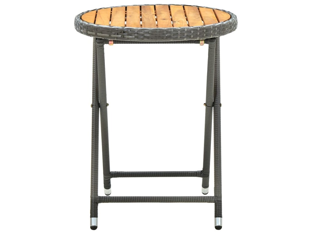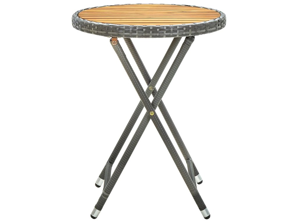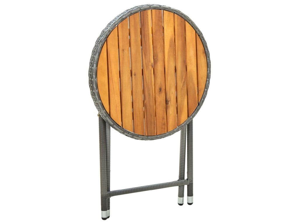Tento stôl má práškový nástrek z oceľového rámu potiahnutého PE ratanom odolným voči poveternostným vplyvom s UV ochranou, a zaisťuje roky vonkajšieho používania. Stolová doska je vyrobená zo spevneného akáciového dreva, je trvácna a pevná. Ak sa stolík nepoužíva, dá sa ľahko zložiť, čím ušetríte miesto.