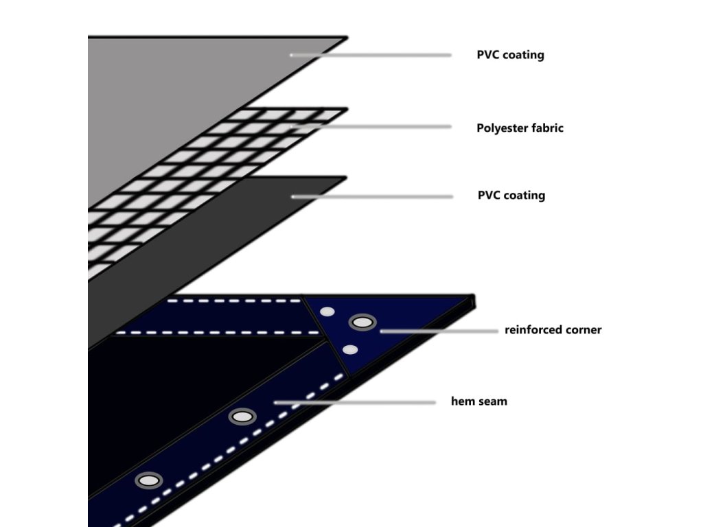 Celta je vyrobená z vysokokvalitného plátna s vrstvou PVC, takže je vodovzdorná, odolná voči roztrhnutiu a UV žiareniu a môže sa používať pri teplotách od -30°C do 70°C. Na všetkých rohoch a pozdĺž okrajov celty sa nachádzajú očká, pomocou ktorých sa dá ľahko upevniť.