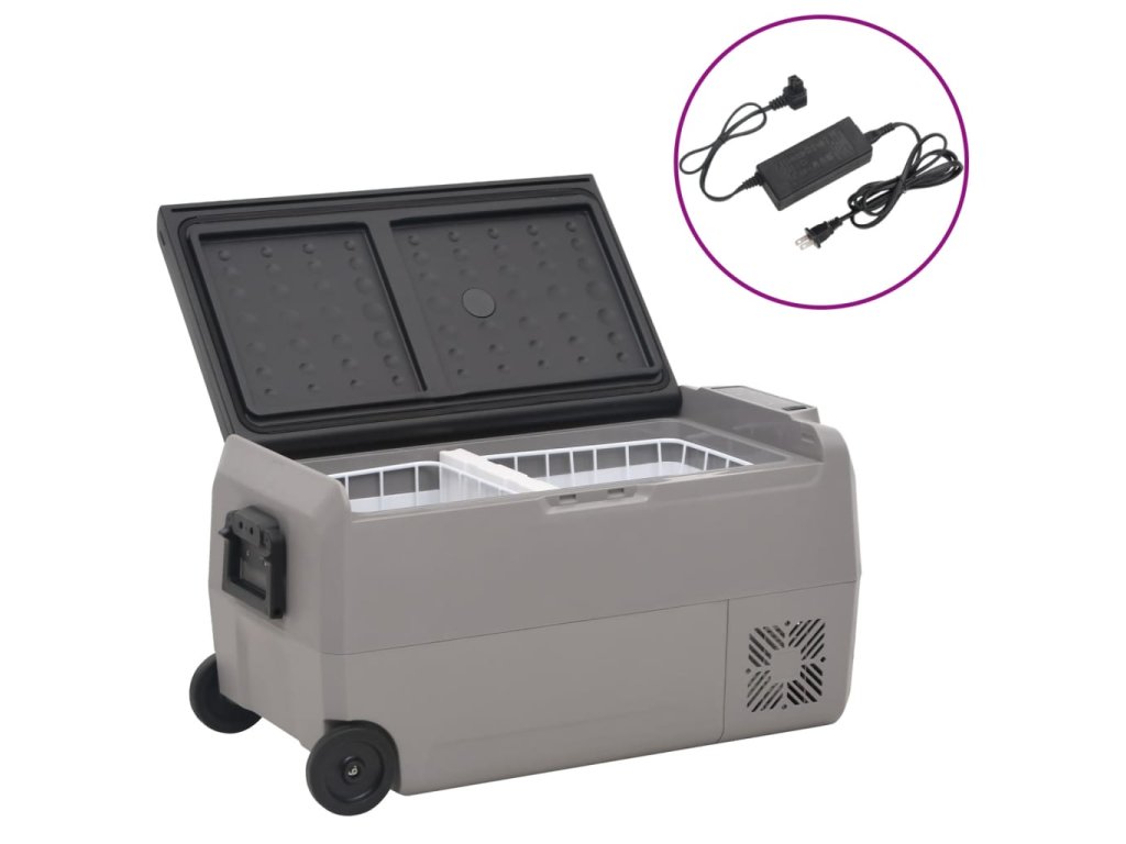 - Prenosný dizajn: Chladiaci box do auta možno ľahko premiestniť všade vďaka bočnej rukoväti a kolieskam. Je to ideálne vybavenie na festivaly, túry, pikniky a kempovanie.