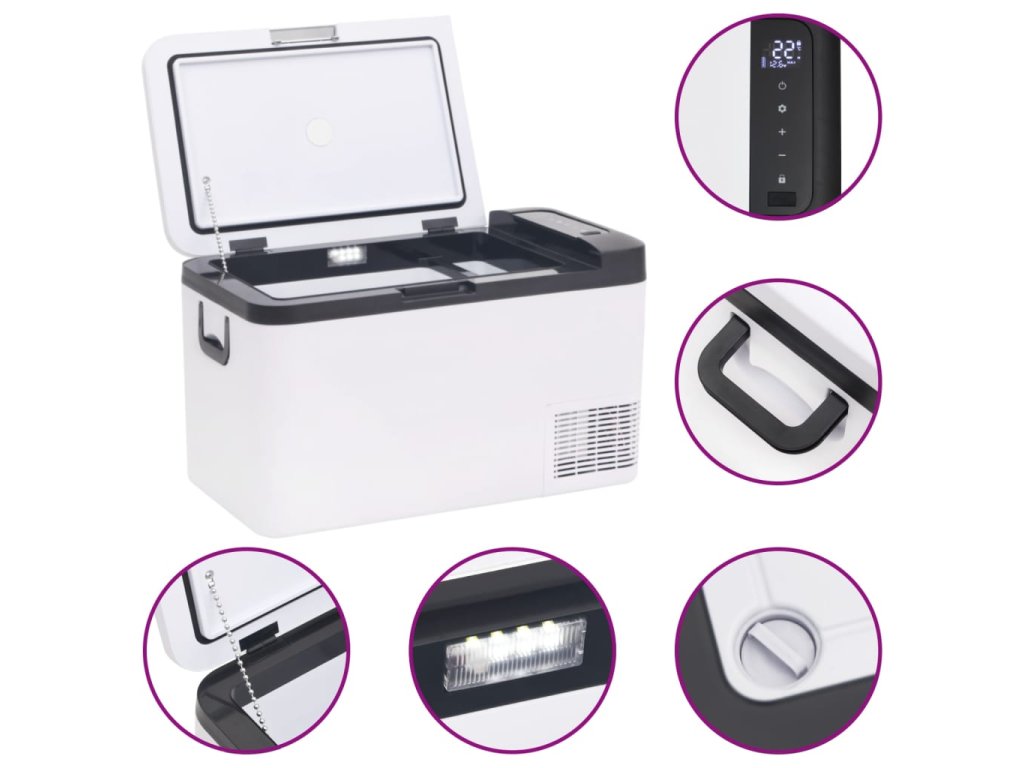 - Prenosný dizajn: Chladiaci box do auta možno ľahko premiestniť všade vďaka bočnej rukoväti. Je to ideálne vybavenie na festivaly, túry, pikniky a kempovanie.