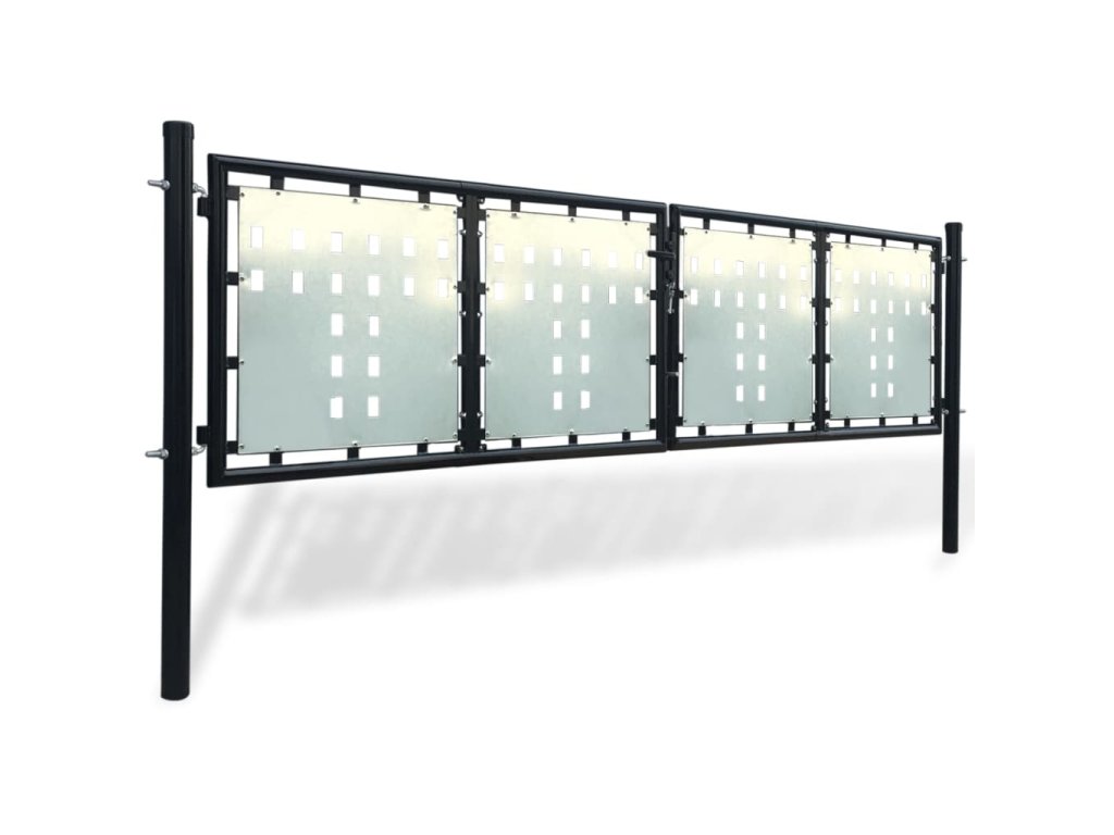 Vďaka pozinkovaným plechom s ozdobnými otvormi, ktoré spevňujú rám, poskytuje brána optimálnu bezpečnosť a súkromie, a zároveň vytvára pôsobivý vstup na pozemok. Brána je vyrobená z pevnej ocele s práškovou povrchovou úpravou, ktorá je odolná voči hrdzi a korózii.