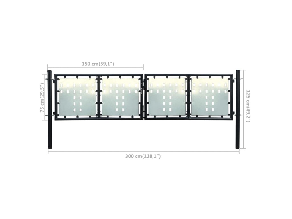 - Celkové rozmery brány: 300 x 125 cm (Š x V)