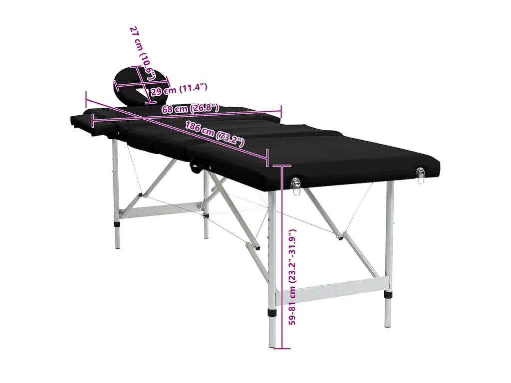 - Rozmery stola bez opierky hlavy: 186 x 68 cm (D x Š)