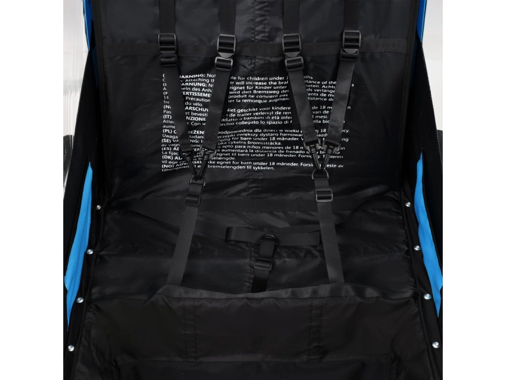 Cyklovozík má pevný oceľový rám a je vyrobený z oxfordovej tkaniny, vďaka čomu je vodeodolný, trvácny a jednoducho sa udržiava. Ochranná strieška a sieťovina ochráni vaše deti pred dažďom alebo slnečným žiarením, zatiaľ čo dve priehľadné bočné okná poskytujú úžasný výhľad na cestu. 5-bodový bezpečnostný systém popruhov poskytuje vašim deťom optimálnu bezpečnosť. Cyklovovozík obsahuje vysoko viditeľné sfarbenie a má reflektory na kolesách pre maximálnu viditeľnosť. Má aj ručnú brzdu na prednom kolese, čím zvyšuje bezpečnosť pri jazde z kopca. Dve vnútorné vrecká poskytujú dostatok úložného priestoru pre jedlo, hračky a ďalšie potreby. Bezpečný rotačný spoj zase zabezpečuje, že cyklovozík zostane stáť, aj keď bicykel spadne.