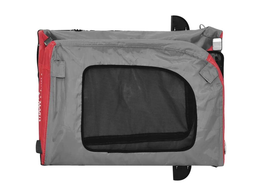 - Pohodlný príves na bicykel: Tento nákladný príves na bicykel je vyrobený z oxfordskej tkaniny a má kryt z PVC, ktorý ochráni vášho domáceho maznáčika pred mrholením. V spodnej časti je navyše čierna nosná doska pre pohodlný priestor.