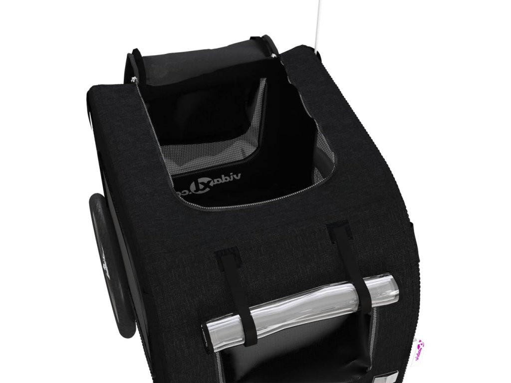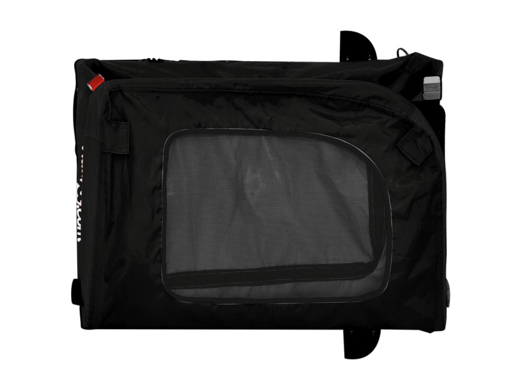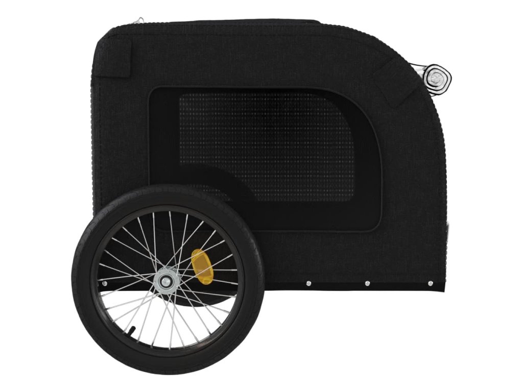 - Pohodlný príves na bicykel: Tento nákladný príves na bicykel je vyrobený z oxfordskej tkaniny a má kryt z PVC, ktorý ochráni vášho domáceho maznáčika pred mrholením. V spodnej časti je navyše čierna nosná doska pre pohodlný priestor.
