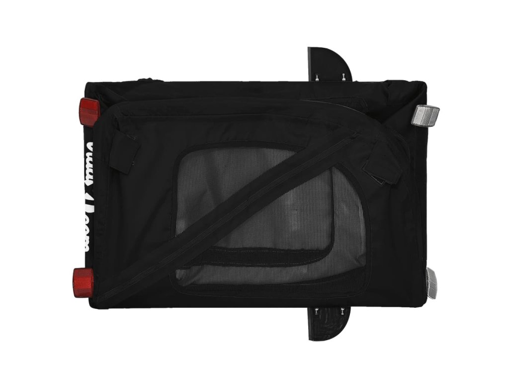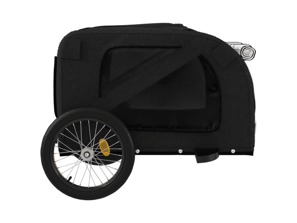 - Pohodlný príves na bicykel: Tento nákladný príves na bicykel je vyrobený z oxfordskej tkaniny a má kryt z PVC, ktorý ochráni vášho domáceho maznáčika pred mrholením. V spodnej časti je navyše čierna nosná doska pre pohodlný priestor.