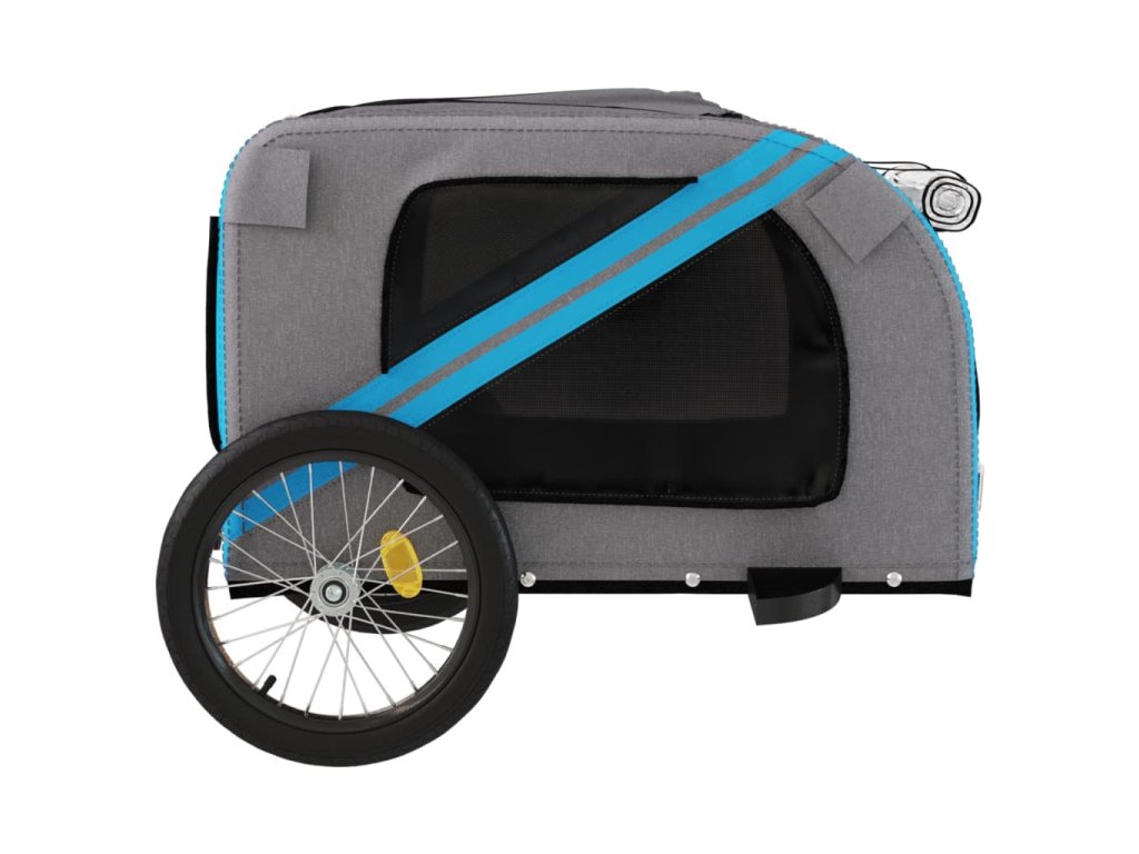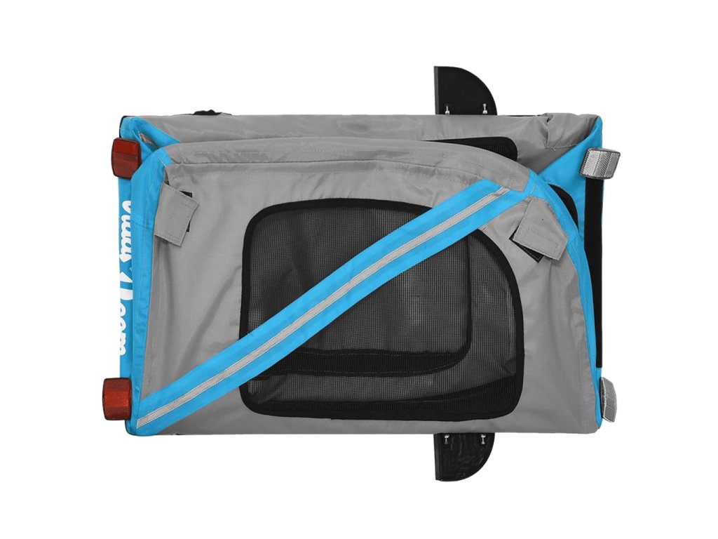 - Pohodlný príves na bicykel: Tento nákladný príves na bicykel je vyrobený z oxfordskej tkaniny a má kryt z PVC, ktorý ochráni vášho domáceho maznáčika pred mrholením. V spodnej časti je navyše čierna nosná doska pre pohodlný priestor.