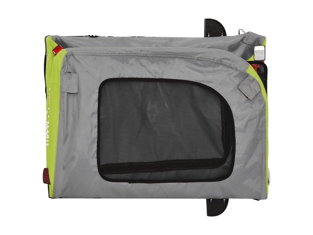 - Pohodlný príves na bicykel: Tento nákladný príves na bicykel je vyrobený z oxfordskej tkaniny a má kryt z PVC, ktorý ochráni vášho domáceho maznáčika pred mrholením. V spodnej časti je navyše čierna nosná doska pre pohodlný priestor.