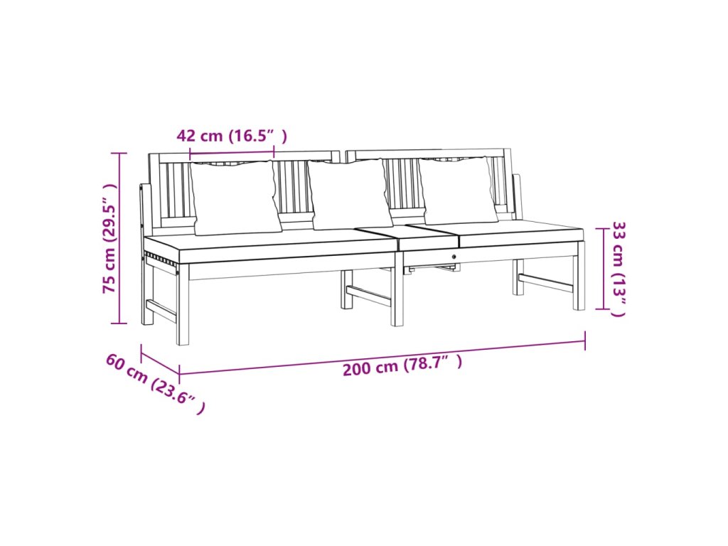 - Rozmery sedadla: 200 x 52 cm (Š x H)