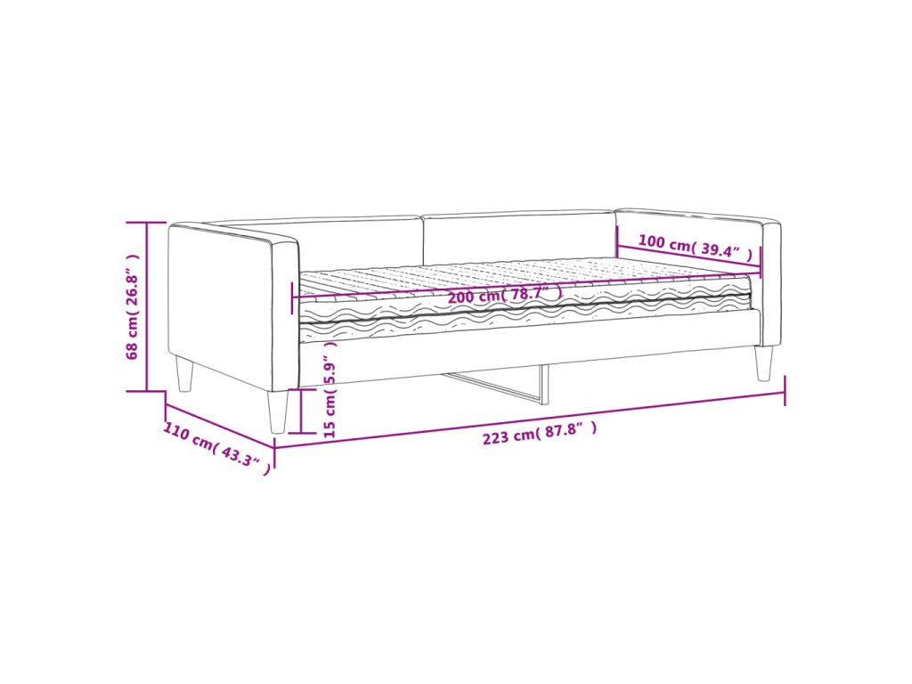 - Odolná látka a pevná konštrukcia: Táto denná pohovka má pevný rám vyrobený z dreva a kovu a je čalúnená odolnou a pohodlnou látkou.