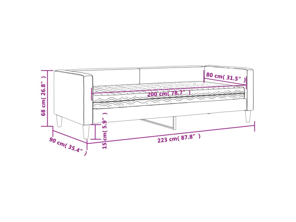 - Odolná látka a pevná konštrukcia: Táto denná pohovka má pevný rám vyrobený z dreva a kovu a je čalúnená odolnou a pohodlnou látkou.