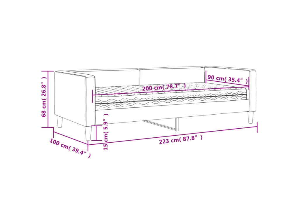 - Odolná látka a pevná konštrukcia: Táto denná pohovka má pevný rám vyrobený z dreva a kovu a je čalúnená odolnou a pohodlnou látkou.