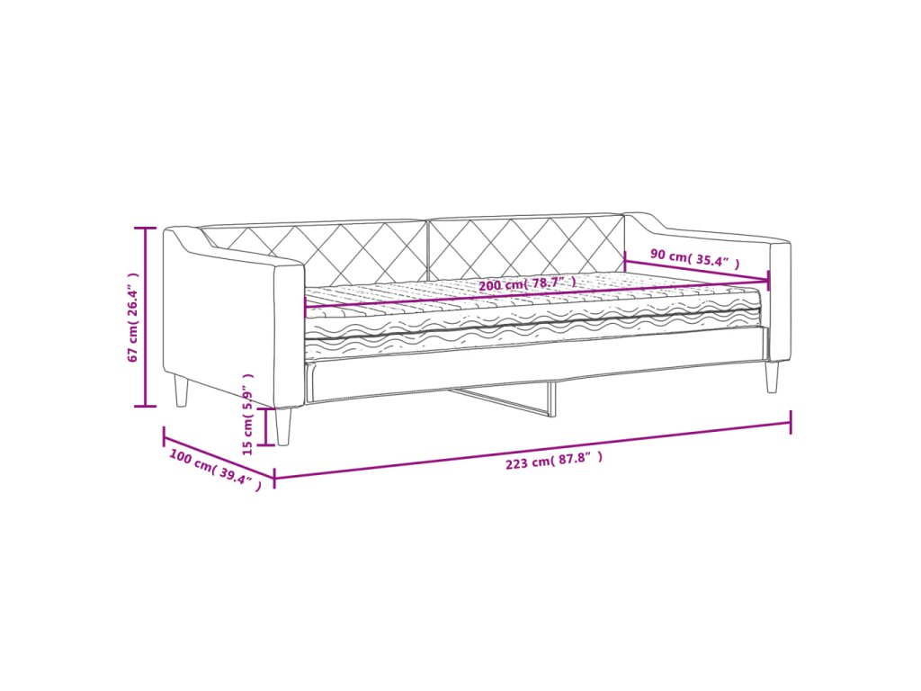 - Odolná látka a pevná konštrukcia: Táto denná pohovka má pevný rám vyrobený z dreva a kovu a je čalúnená odolnou a pohodlnou látkou.