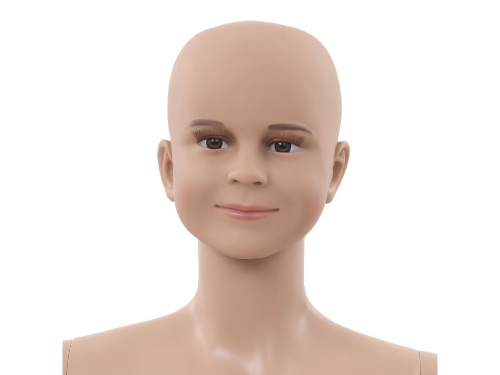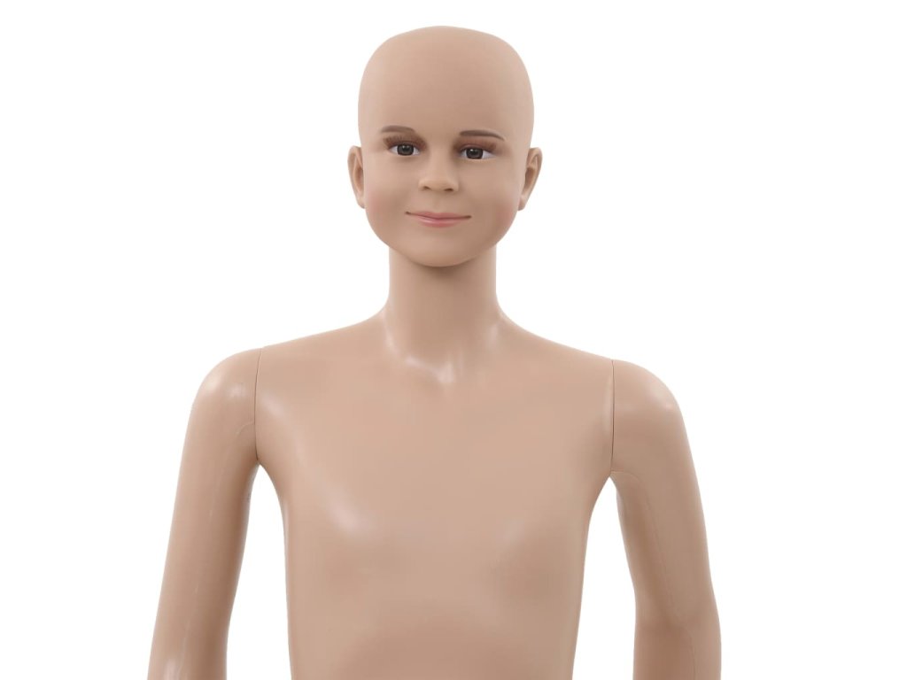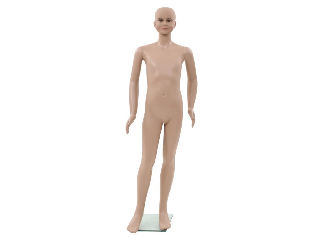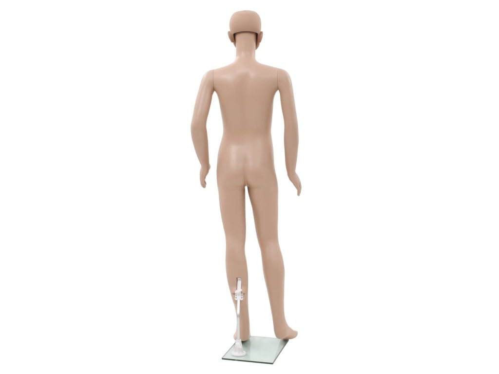 Táto celotelová detská figurína so skleneným podstavcom sa môže používať na vystavenie oblečenia, parochní alebo topánok vo výkladoch.