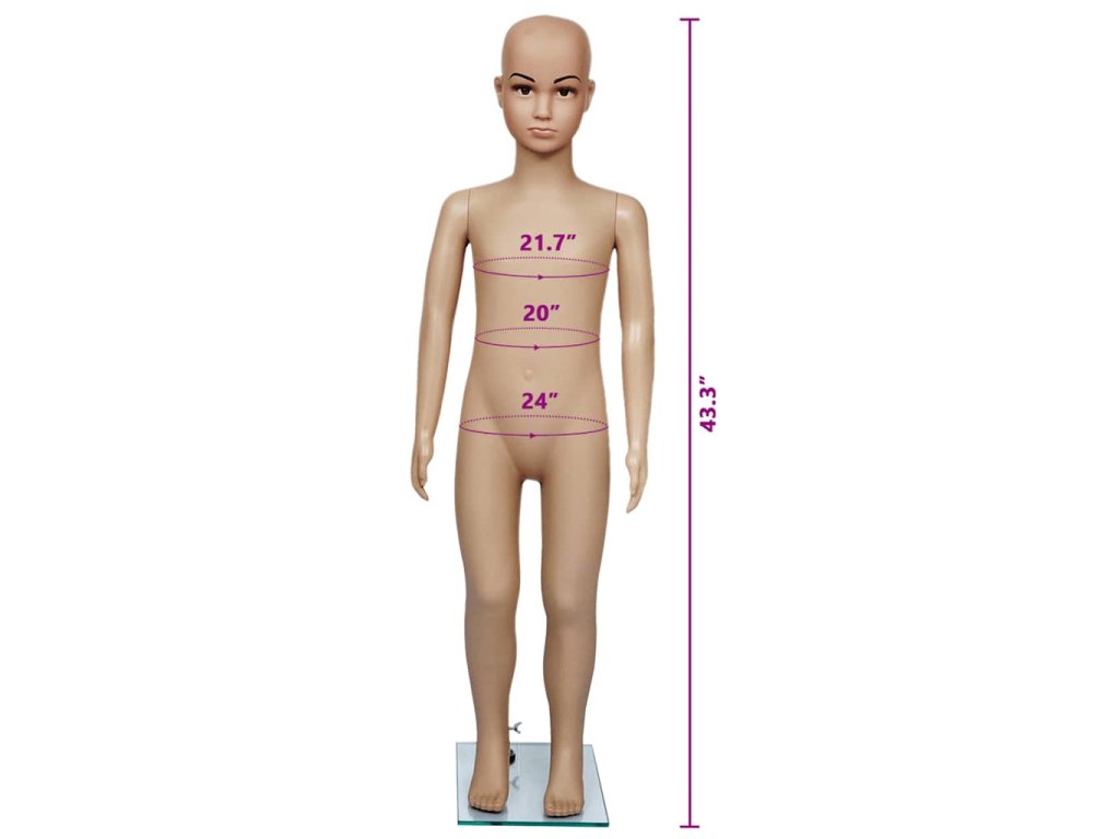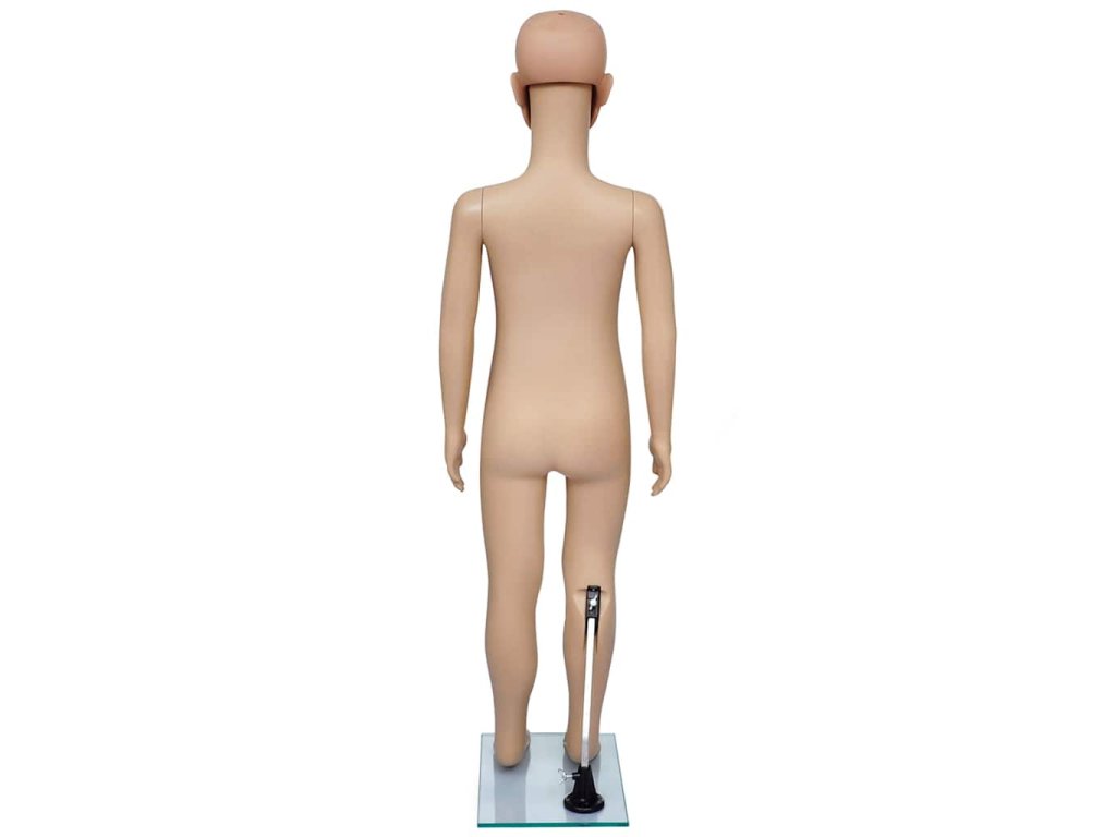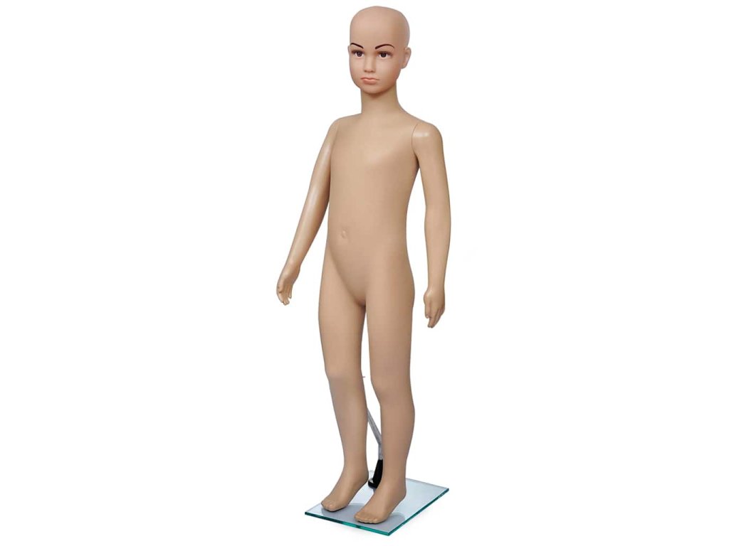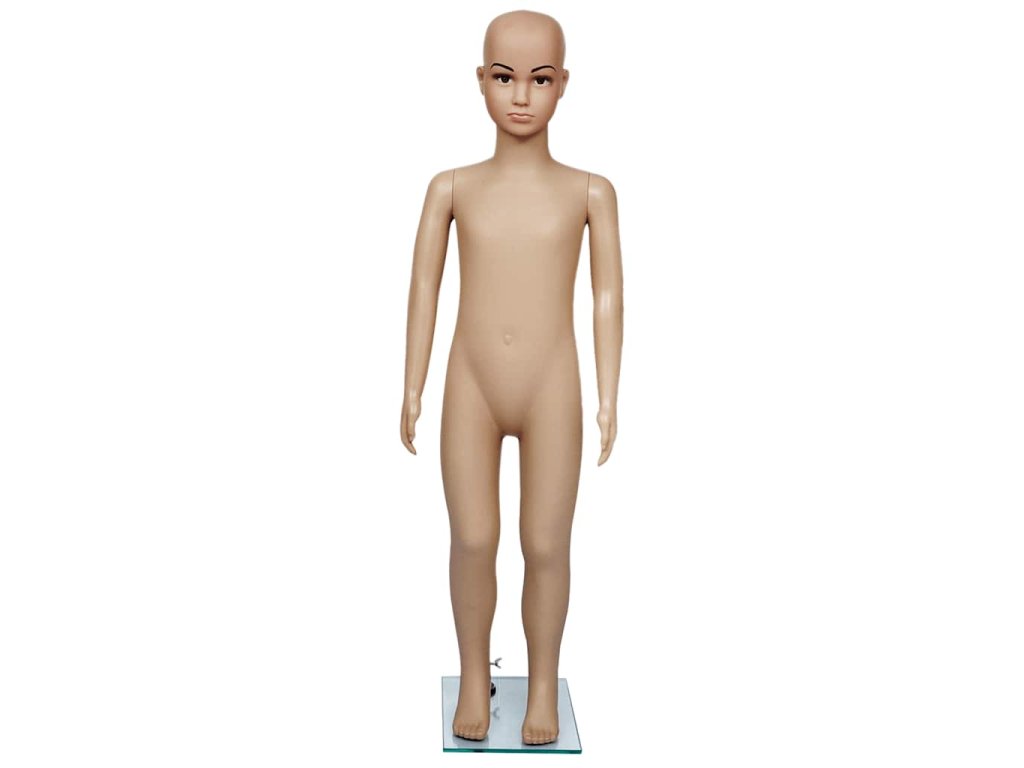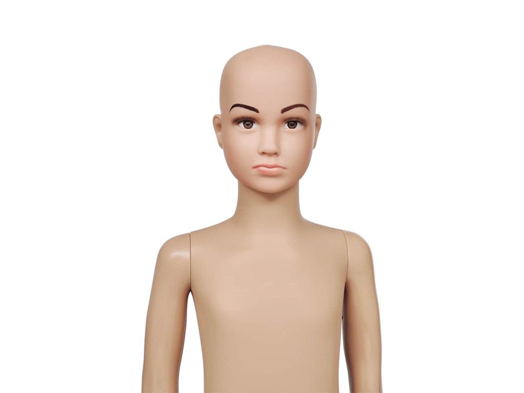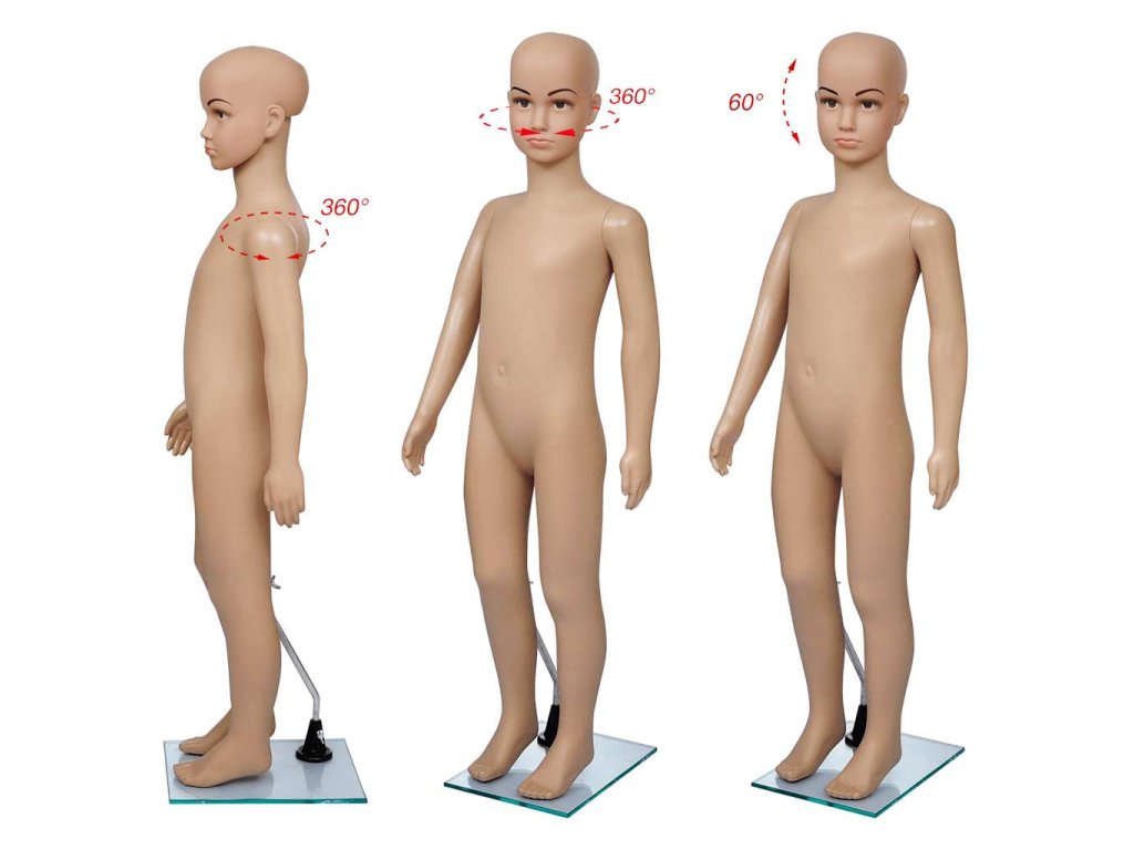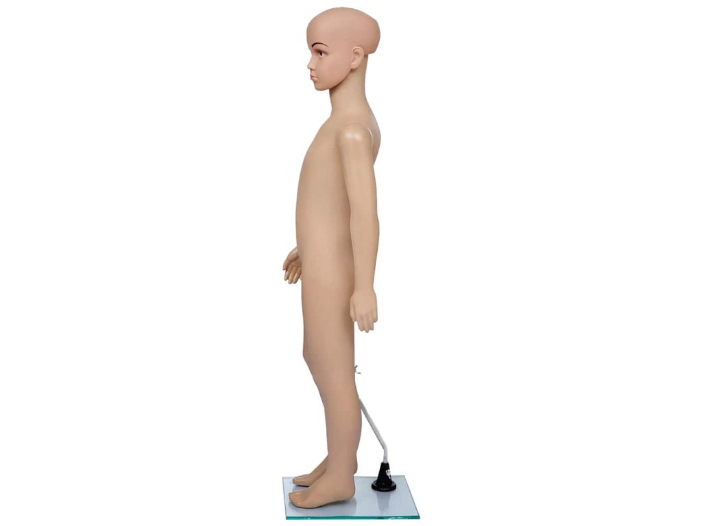 Táto detská figurína je vhodná na vystavovanie oblečenia, parochní, módnych doplnkov a topánok vo výkladoch.