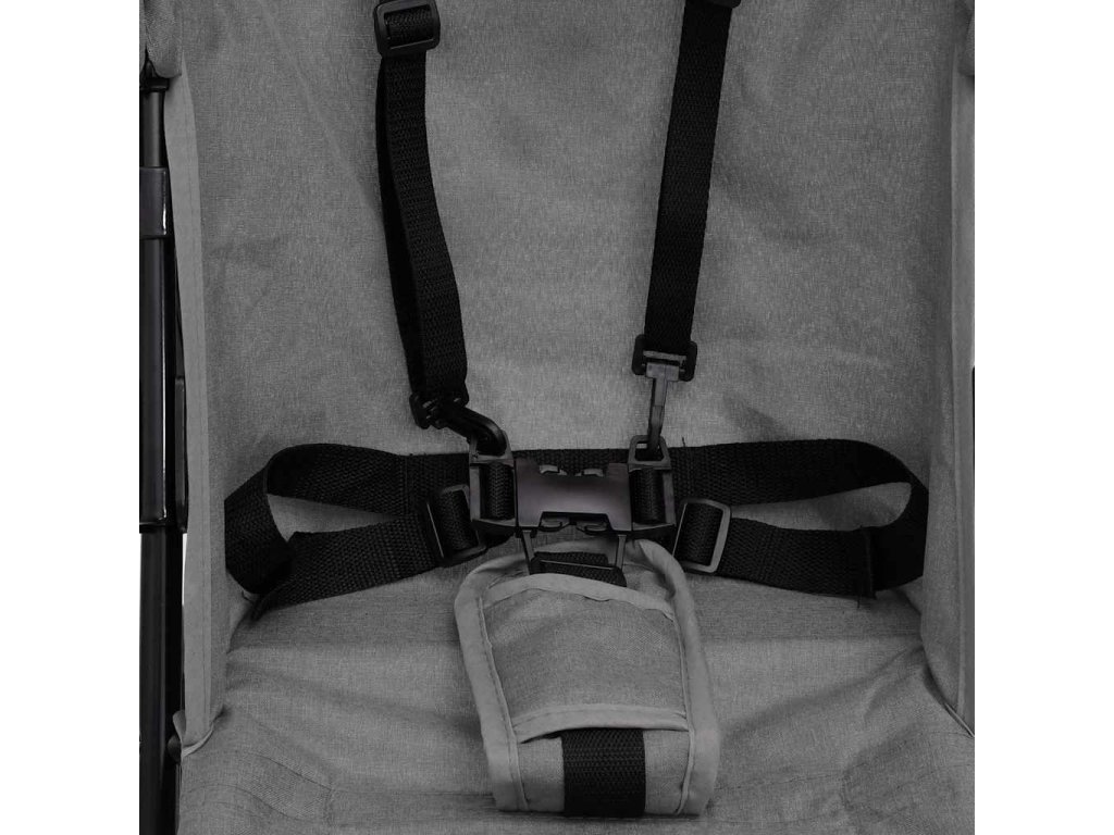 Oceľový rám zaisťuje, že je pevná a odolná. Nastaviteľná strieška chráni dieťatko pred škodlivým UV žiarením. 3-bodový bezpečnostný pás zaisťuje bezpečnosť vášho dieťatka, zatiaľ čo otočné predné kolieska zaisťujú plynulý pohyb. Vďaka konštrukcii, ktorú možno zložiť jednou rukou, sa kočík tiež ľahko prenáša a skladuje.