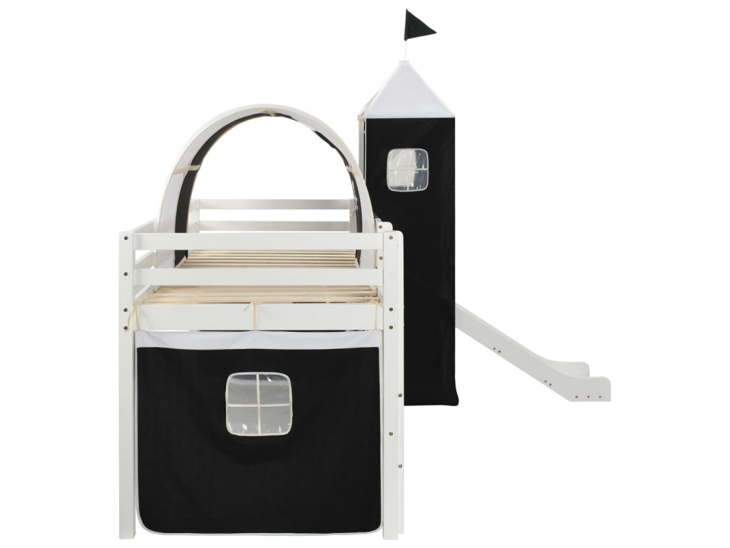 Vaše dieťa si užije hranie sa a spanie v tejto poschodovej posteli s pirátskou tématikou, ktorá má šmykľavku, rebrík, stan a plátenú strechu.
