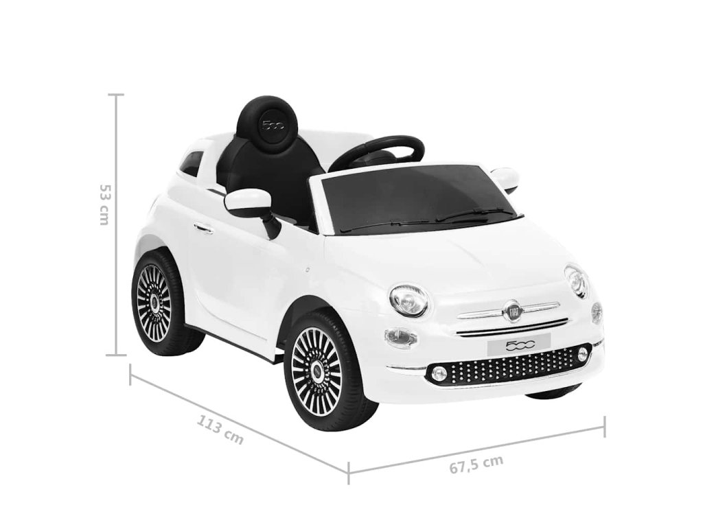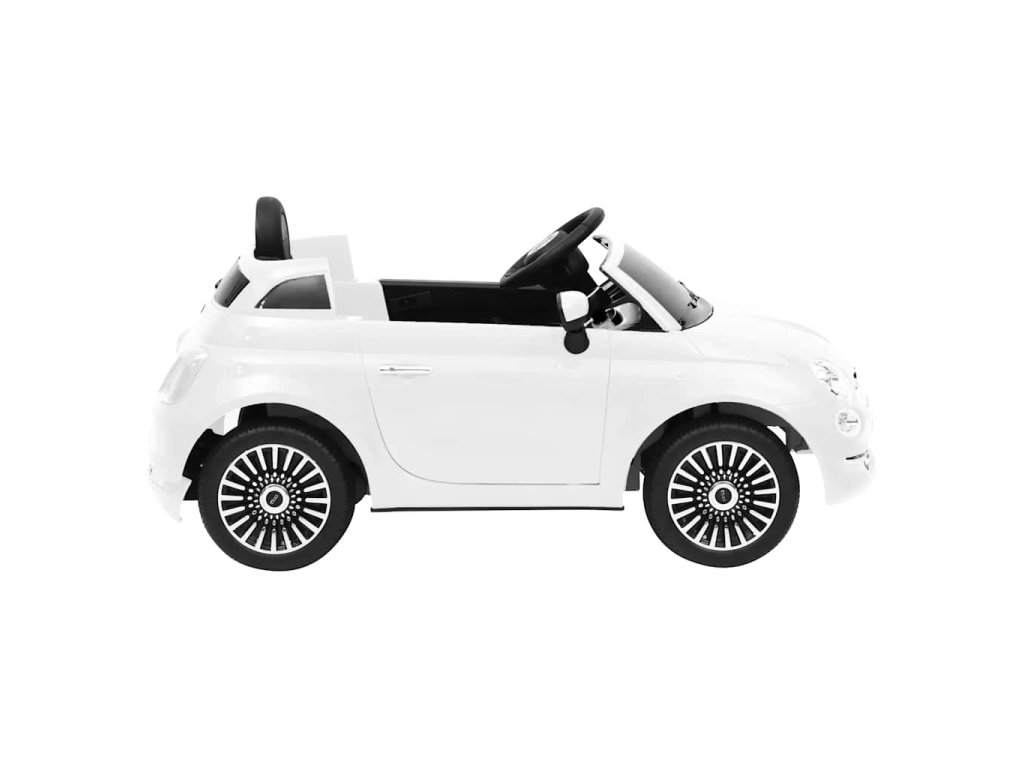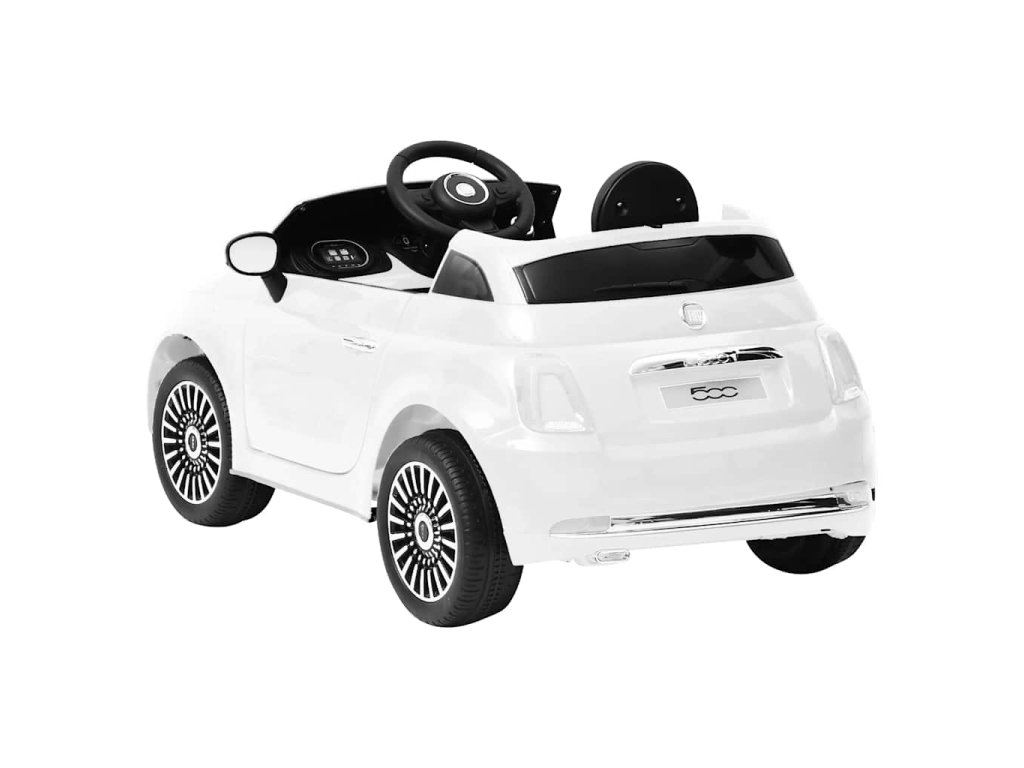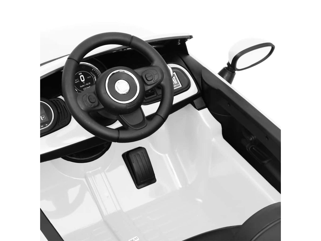 Pojazdné autíčko má volant, nízko položené sedadlo s bezpečnostným pásom a ergonomicky tvarované operadlo, ktoré uľahčujú nastupovanie a vystupovanie. Detské elektrické autíčko zrýchľuje pomaly a plynulo. Elektrické autíčko Fiat 500 je okrem toho vybavené aj displejom s hudbou, a tak poskytuje jedinečný zážitok. Nachádzajú sa na ňom predné aj zadné svetlomety.