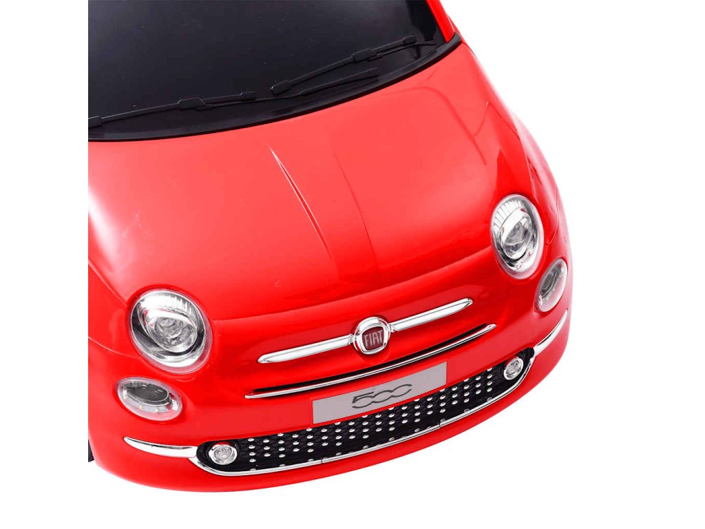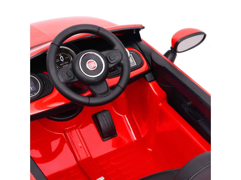 Pojazdné autíčko má volant, nízko položené sedadlo s bezpečnostným pásom a ergonomicky tvarované operadlo, ktoré uľahčujú nastupovanie a vystupovanie. Detské elektrické autíčko zrýchľuje pomaly a plynulo. Elektrické autíčko Fiat 500 je okrem toho vybavené aj displejom s hudbou, a tak poskytuje jedinečný zážitok. Nachádzajú sa na ňom predné aj zadné svetlomety.