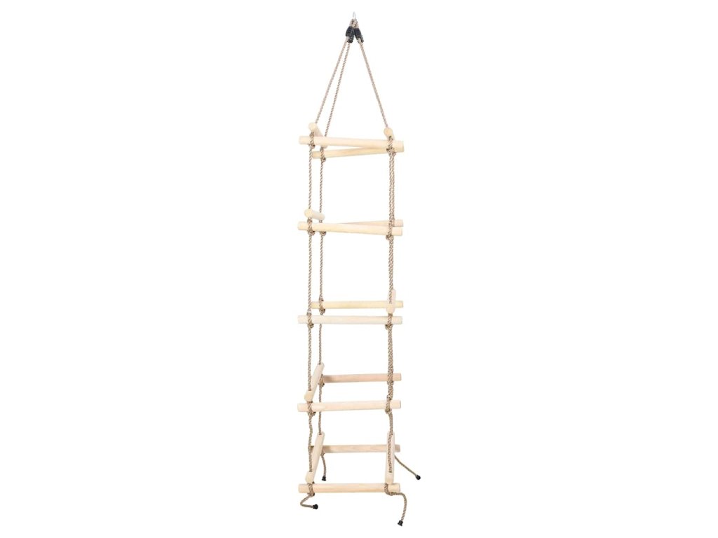 Lanový rebrík so stupňami z masívneho borovicového dreva a PE lanom je určený pre tých najmenších, ktorí po ňom budú môcť šplhať hore a dole. Rebrík je odolný proti vplyvom počasia, vďaka čomu je vhodný do záhrady či na dvor. Lezecký rebrík má na dvoch koncoch lana závesné krúžky na pripevnenie k hojdačke alebo konštrukcii detského domčeka.