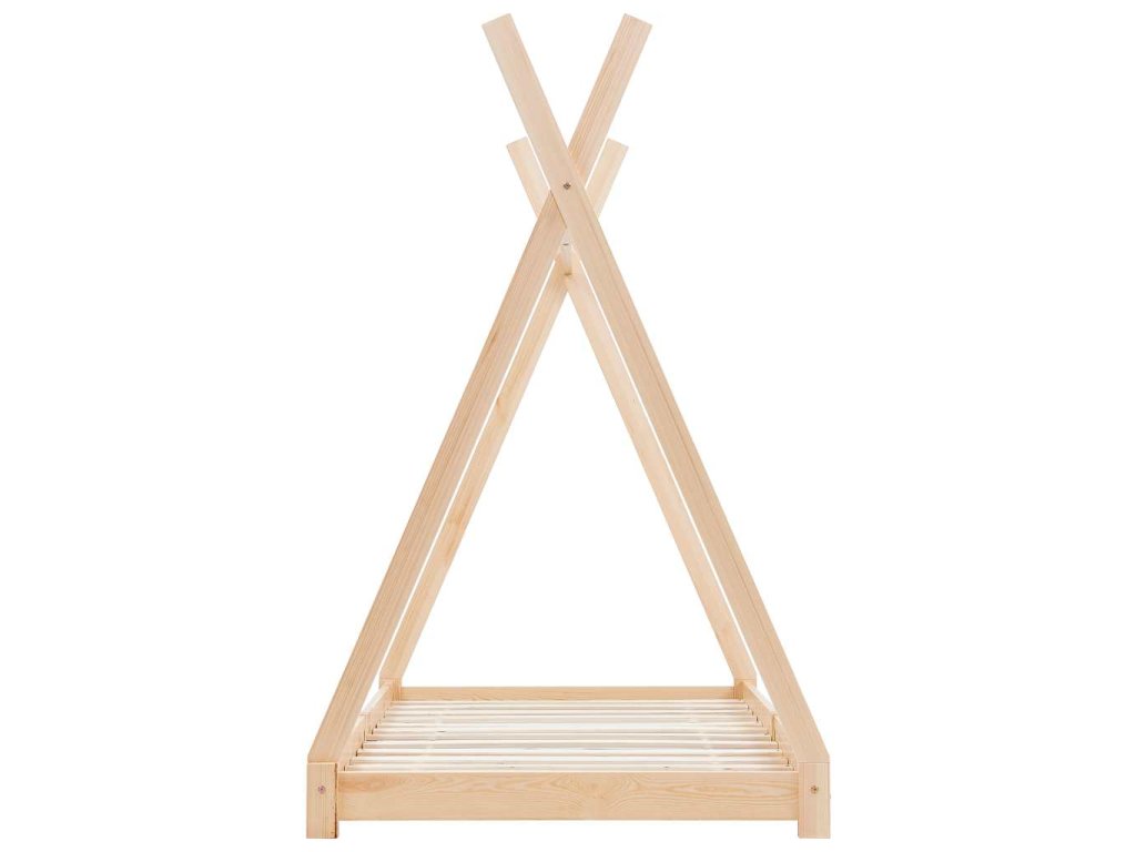 Posteľ je vybavená prekríženým rámom inšpirovaným skvelými stanmi v štýle típí, na ktorý môžete zavesiť záclony na posteľ, aby ste pre svoje dieťa vytvorili súkromie. Môže byť tiež použitá ako čitateľský kútik alebo domček pre deti. Rám postele je vyrobený z borovicového masívu a je mimoriadne pevný a odolný. Pevné lamely poskytujú potrebnú oporu a sú veľmi pohodlné. Tento rám postele je vhodný pre matrac s rozmermi 80 x 160 cm.