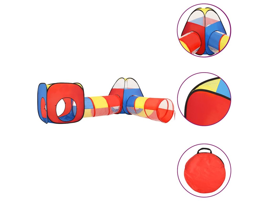 - Dizajn 3 v 1: Súčasťou je stan, domčekový stan a hrací tunel, takže si deti môžu užiť čas pri hre dlhé hodiny. Môžu sa plaziť, hrať sa s hračkami a nechať uletieť svoju tvorivosť a fantáziu.