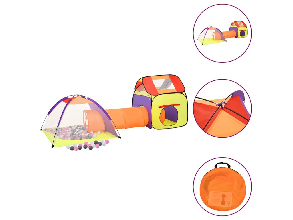 - Dizajn 3 v 1: Súčasťou je stan, domčekový stan a hrací tunel, takže si deti môžu užiť čas pri hre dlhé hodiny. Môžu sa plaziť, hrať sa s hračkami a nechať uletieť svoju tvorivosť a fantáziu.