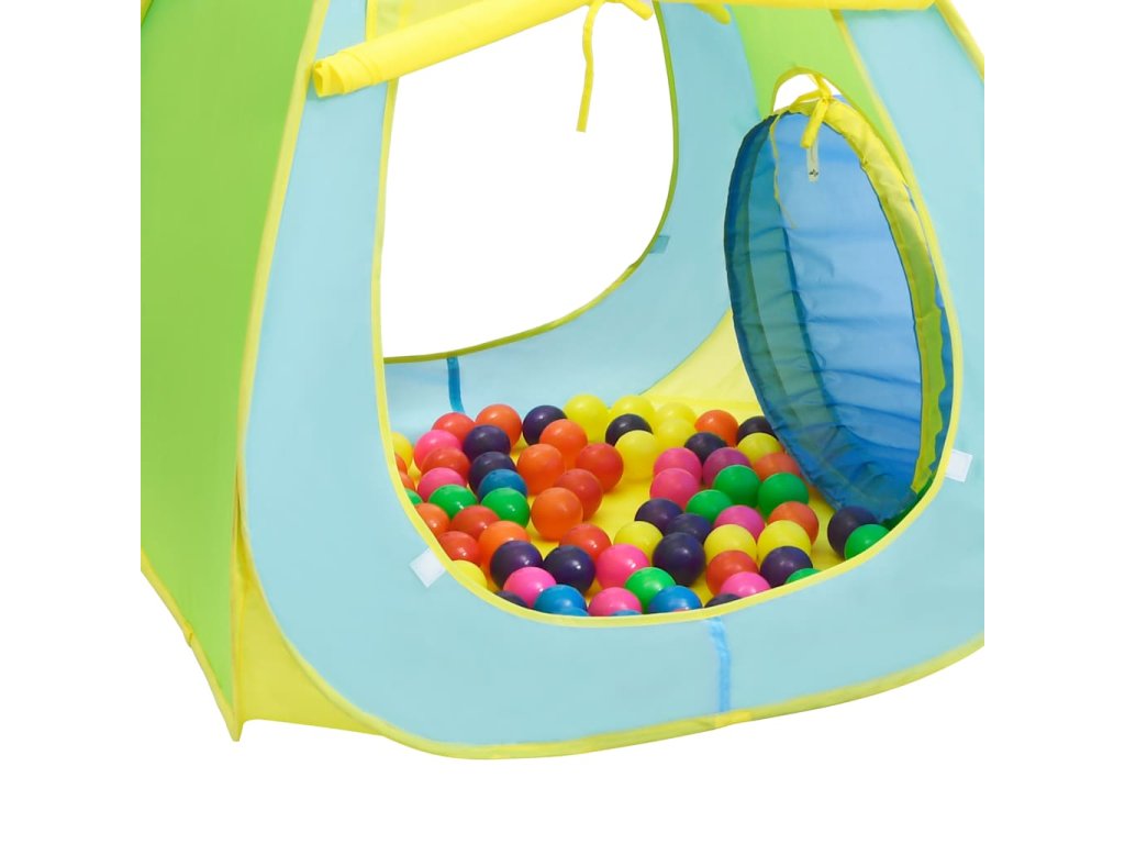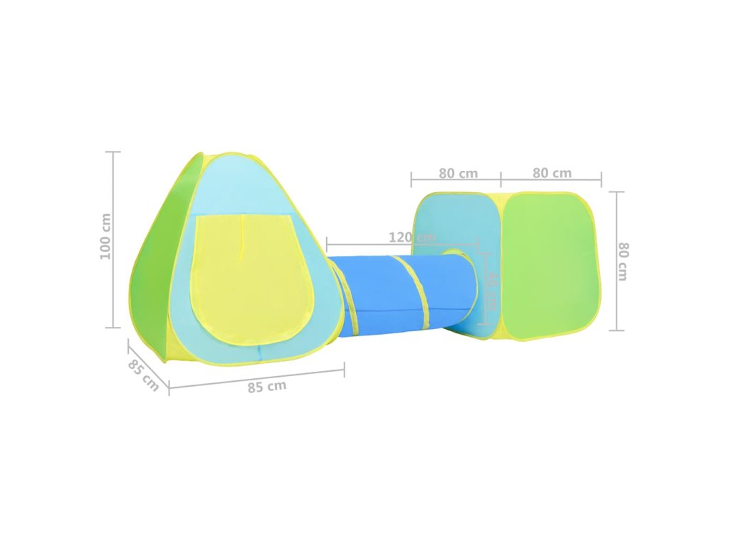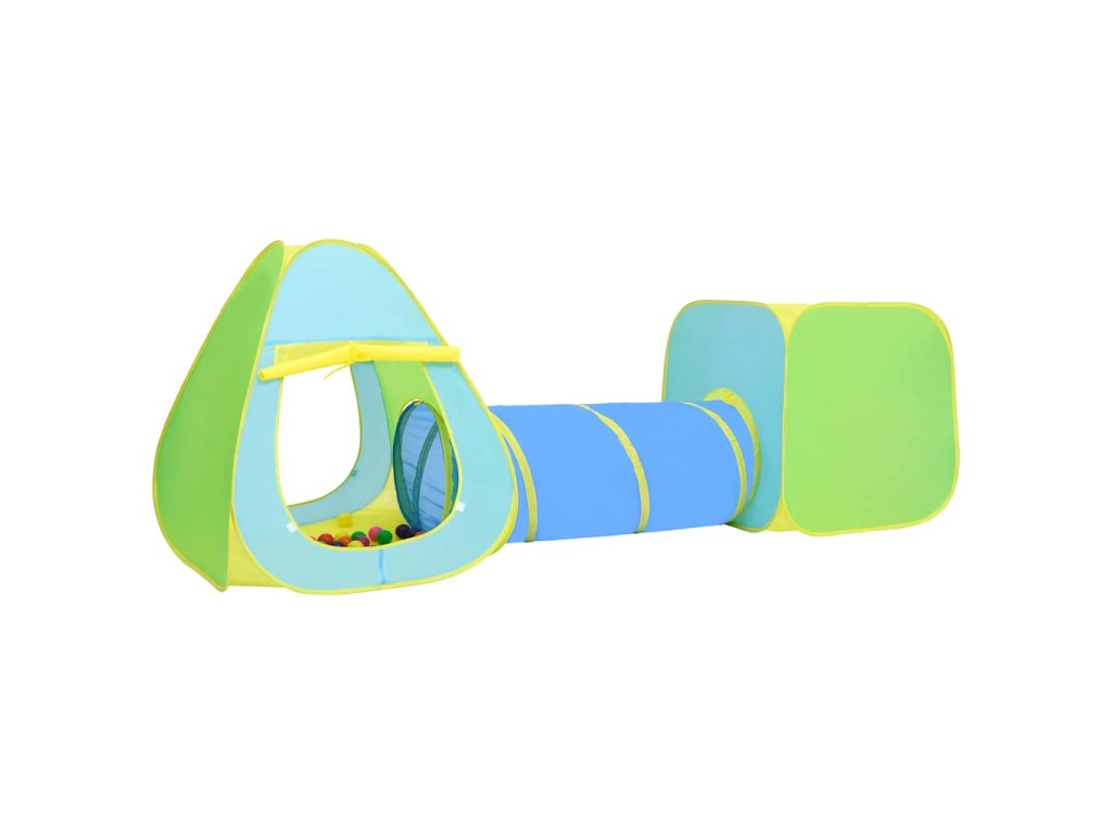 Hračkársky stan je vyrobený z polyesteru, vďaka čomu je pevný a odolný. Skladá sa z kockového stanu, teepee stanu a tunela, takže si deti môžu užiť čas pri hre vnútri celé hodiny. Môžu sa plaziť a hrať sa vo vnútri stanu a rozvíjať svaly rúk a nôh. Priložené loptičky sú vhodné na hranie s kamarátmi.
