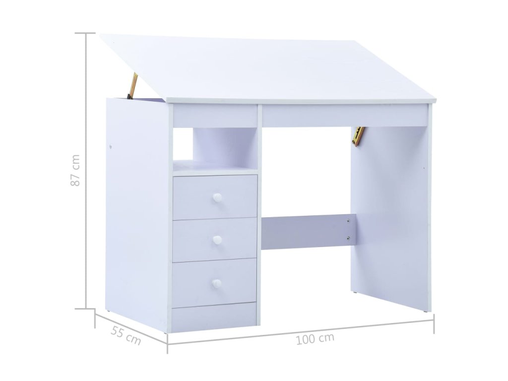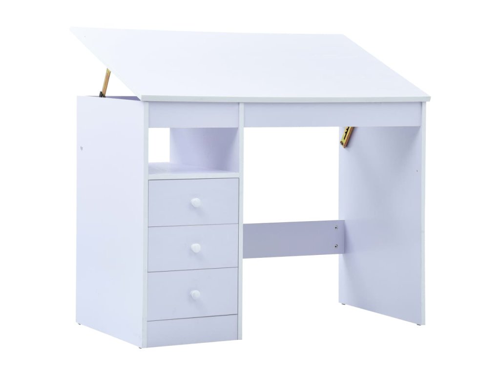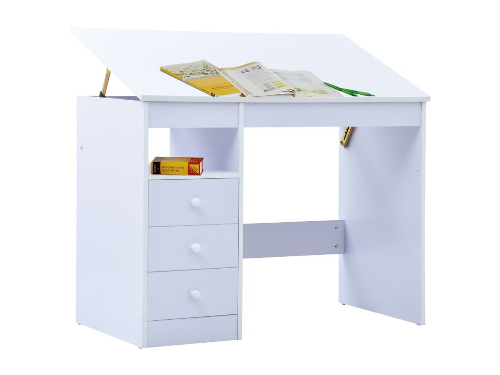 Tento detský stolík je vyrobený z kvalitnej drevotriesky a je navrhnutý na dlhodobé používanie, ľahko sa čistí a udržiava vlhkou handričkou. Sklopná stolová doska poskytuje pohodlné miesto na štúdium, čítanie a kreslenie bez toho, aby si dieťa namáhalo krk. Obsahuje veľké zásuvky a otvorenú poličku, a ponúka veľký úložný priestor pre gumy, pastelky, maľovanky a ďalšie položky.