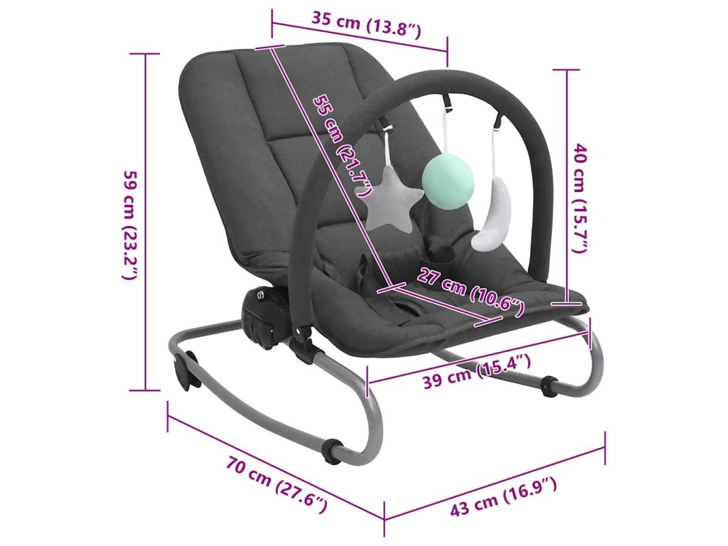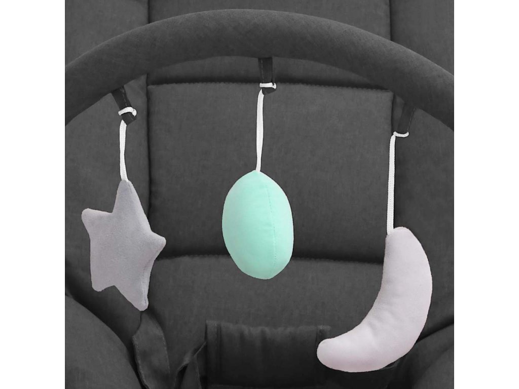Táto detská hojdačka s oceľovým rámom je robustná a odolná. Má nastaviteľnú opierku chrbta a opierku nôh, aby vyhovovala potrebám dieťaťa. Integrované 3-bodové bezpečnostné pásy tiež poskytujú dieťaťu optimálnu bezpečnosť. Toto hojdacie zariadenie možno používať v pevnej polohe alebo ako hojdačku, ktorá môže pomôcť upokojiť vaše dieťa, keď ste zaneprázdnení. Hrazda s hračkami nad hlavou navyše dieťa zamestná a ponúkne množstvo zábavy!