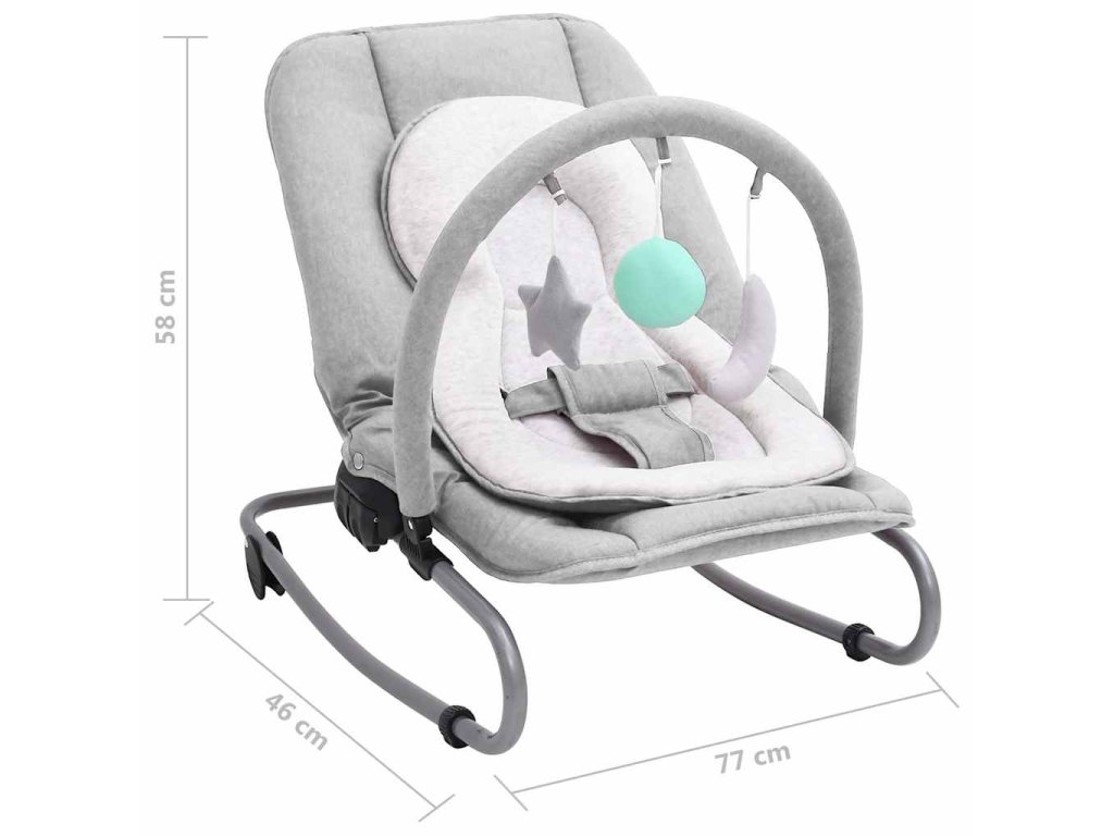 Chrbtová opierka a opierka nôh tejto detskej hojdačky sa dajú nastaviť tak, aby si dieťatko našlo dokonalú polohu na hranie alebo oddych. Maximálnu bezpečnosť ponúka aj 3-bodový bezpečnostný pás. Sedačka poskytuje optimálny komfort. Hračky, ktoré sú súčasťou balenia a sú zavesené na hrazde zabavia vaše dieťatko a by budete môcť vykonávať iné úlohy.