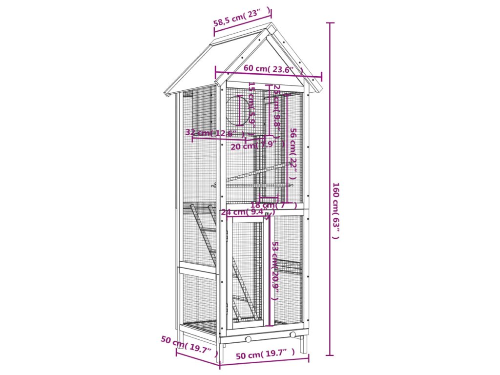 - Všestranná vtáčia voliéra: Vrátane hniezdnej búdky, rebríka a bydiel, poskytuje voliéra dostatok priestoru pre voľné aktivity pre vtáky.