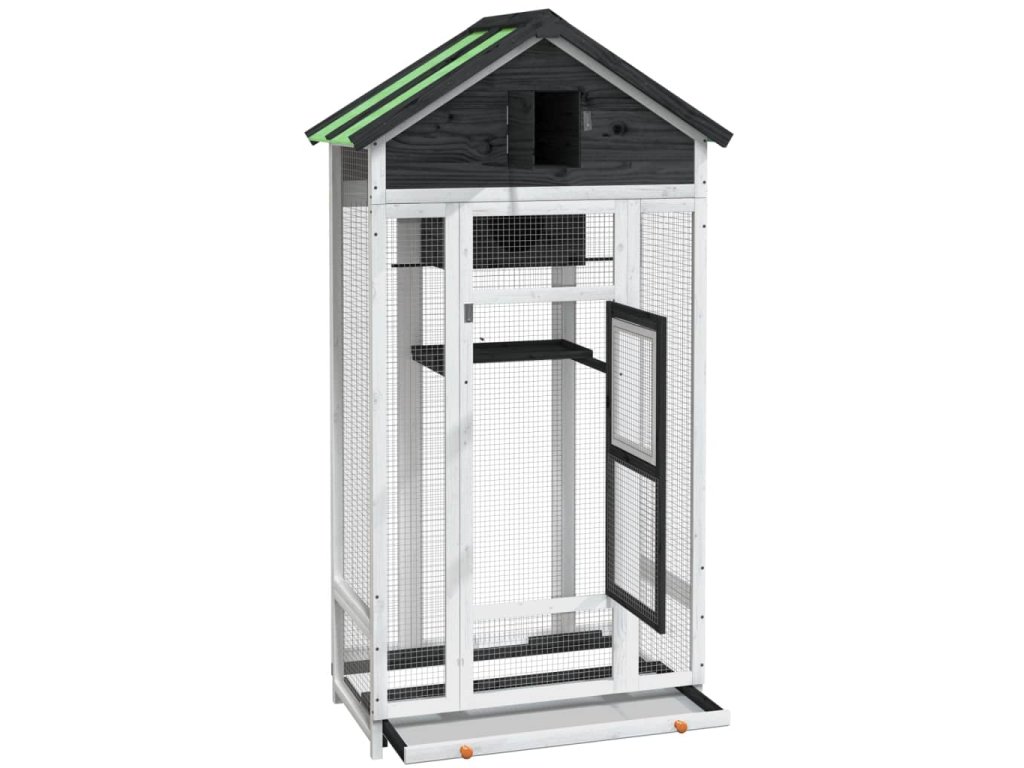 - Všestranná vtáčia voliéra: Vrátane hniezdnej búdky a bydiel poskytuje voliéra dostatok priestoru pre voľné aktivity pre vtáky.