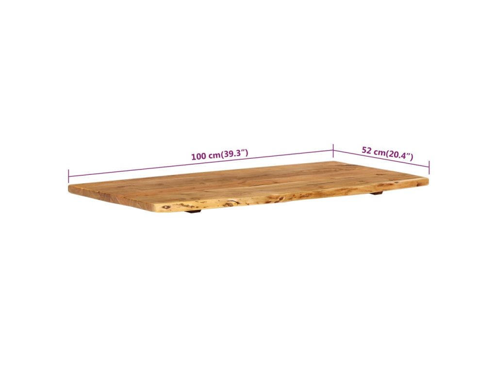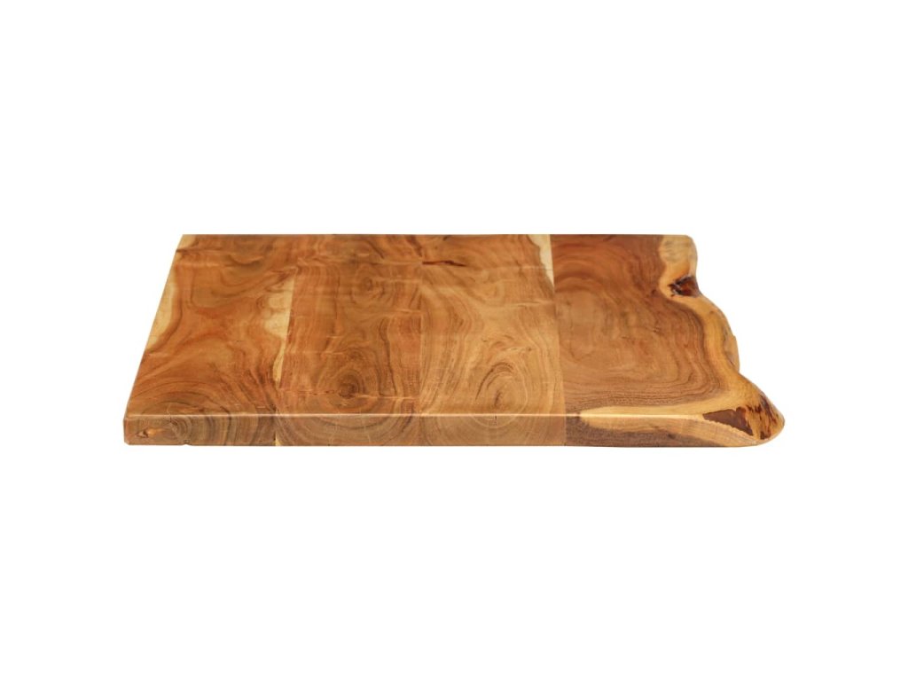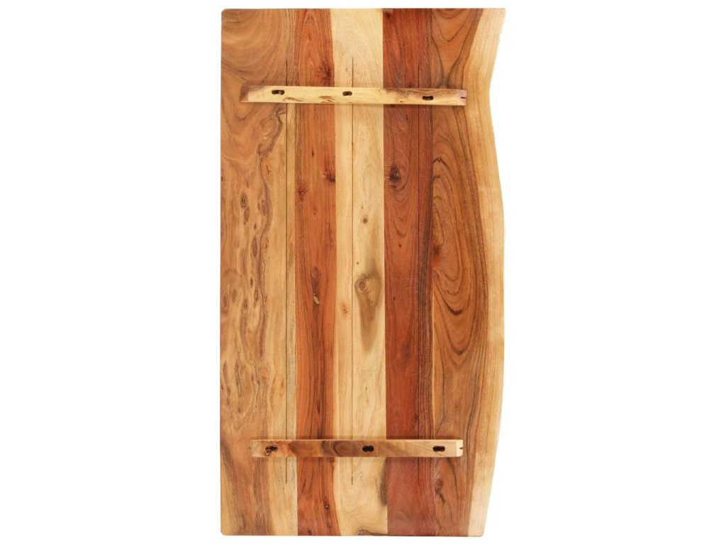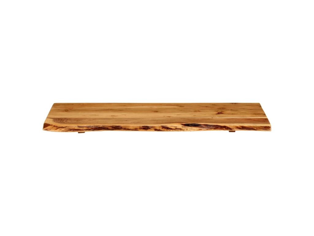 Doska na kúpeľňovú skrinku je vyrobená z akáciového masívu. Ide o drevo tropického listnatého stromu, ktoré je husté, pevné a trvácne. Akáciový masív je vyleštený, natretý a nalakovaný, takže je dobre zatmelený a chránený pred vlhkosťou. Táto doska na kúpeľňovú skrinku je vyrobená z kmeňa stromu a kopíruje jeho prirodzené hrany, a tak krása živého dreva zostane zachovaná.