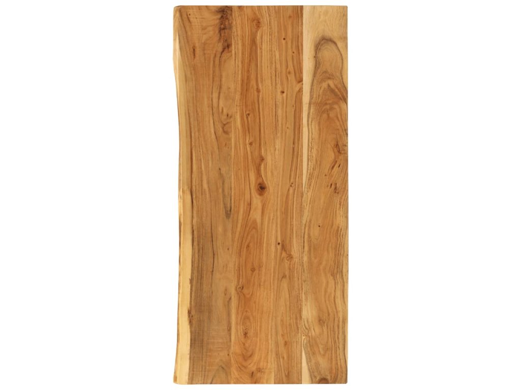 Doska na kúpeľňovú skrinku je vyrobená z akáciového masívu. Ide o drevo tropického listnatého stromu, ktoré je husté, pevné a trvácne. Akáciový masív je vyleštený, natretý a nalakovaný, takže je dobre zatmelený a chránený pred vlhkosťou. Táto doska na kúpeľňovú skrinku je vyrobená z kmeňa stromu a kopíruje jeho prirodzené hrany, a tak krása živého dreva zostane zachovaná.
