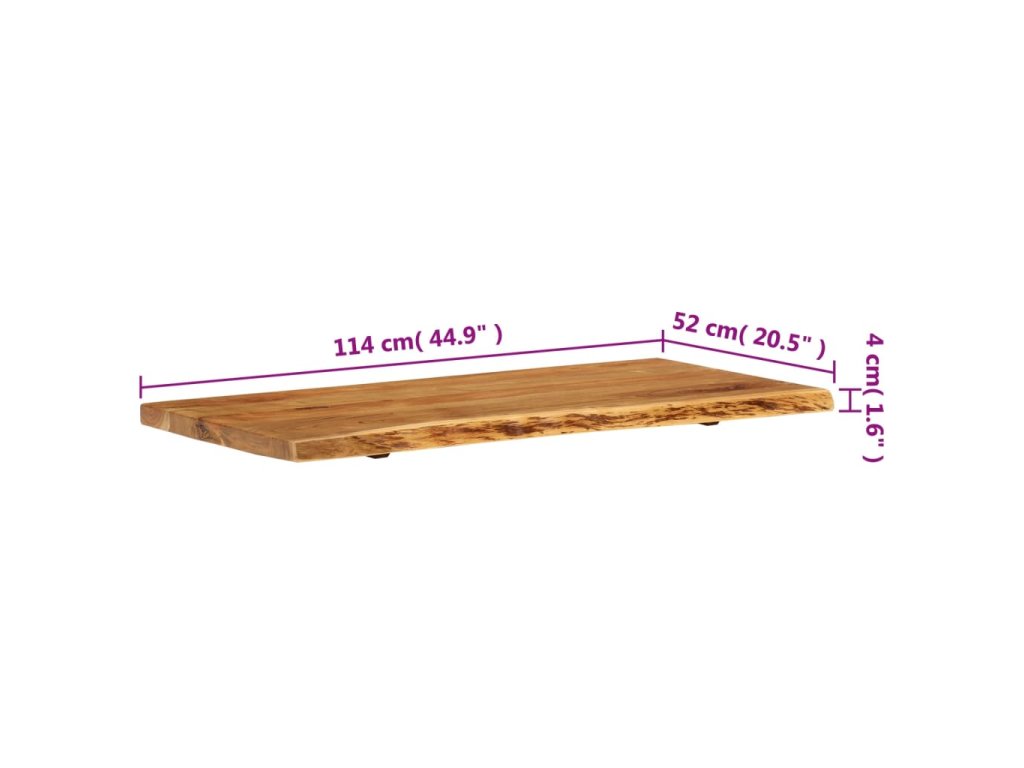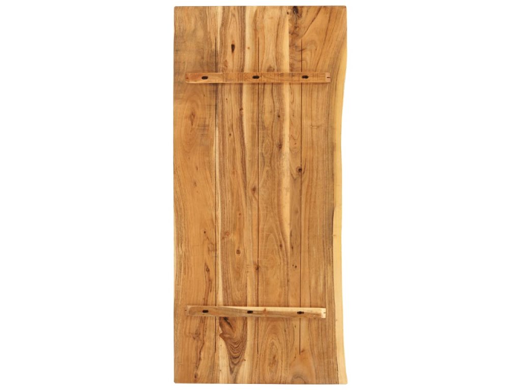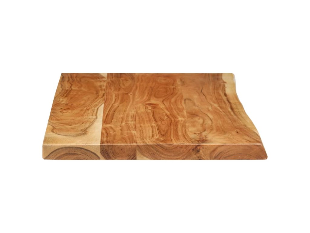 Doska na kúpeľňovú skrinku je vyrobená z akáciového masívu. Ide o drevo tropického listnatého stromu, ktoré je husté, pevné a trvácne. Akáciový masív je vyleštený, natretý a nalakovaný, takže je dobre zatmelený a chránený pred vlhkosťou. Táto doska na kúpeľňovú skrinku je vyrobená z kmeňa stromu a kopíruje jeho prirodzené hrany, a tak krása živého dreva zostane zachovaná.