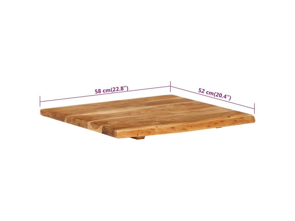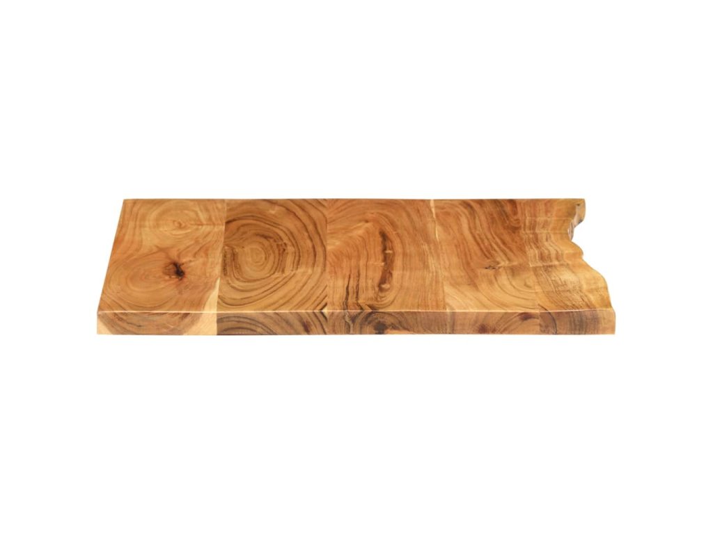 Doska na kúpeľňovú skrinku je vyrobená z akáciového masívu. Ide o drevo tropického listnatého stromu, ktoré je husté, pevné a trvácne. Akáciový masív je vyleštený, natretý a nalakovaný, takže je dobre zatmelený a chránený pred vlhkosťou. Táto doska na kúpeľňovú skrinku je vyrobená z kmeňa stromu a kopíruje jeho prirodzené hrany, a tak krása živého dreva zostane zachovaná.