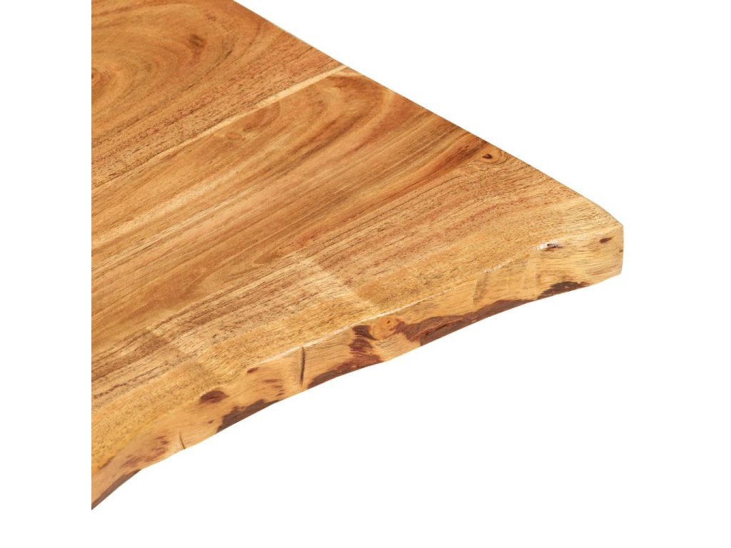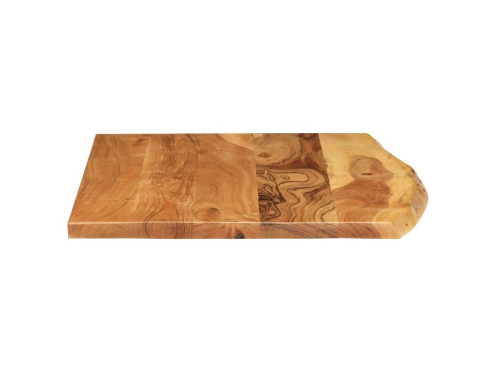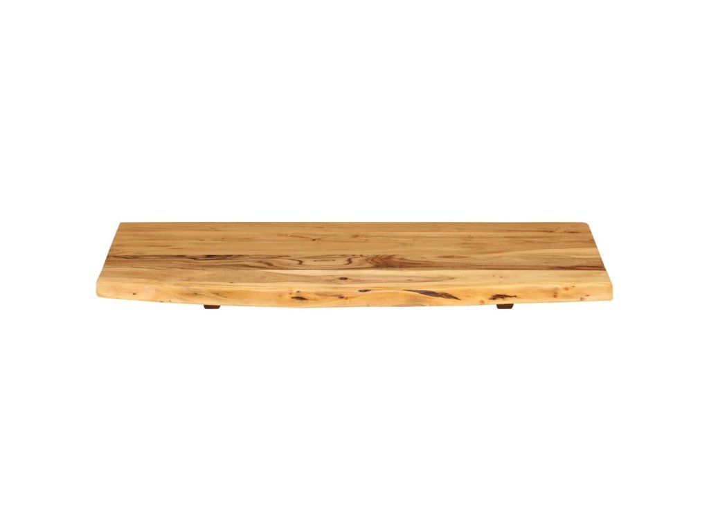 Doska na kúpeľňovú skrinku je vyrobená z akáciového masívu. Ide o drevo tropického listnatého stromu, ktoré je husté, pevné a trvácne. Akáciový masív je vyleštený, natretý a nalakovaný, takže je dobre zatmelený a chránený pred vlhkosťou. Táto doska na kúpeľňovú skrinku je vyrobená z kmeňa stromu a kopíruje jeho prirodzené hrany, a tak krása živého dreva zostane zachovaná.