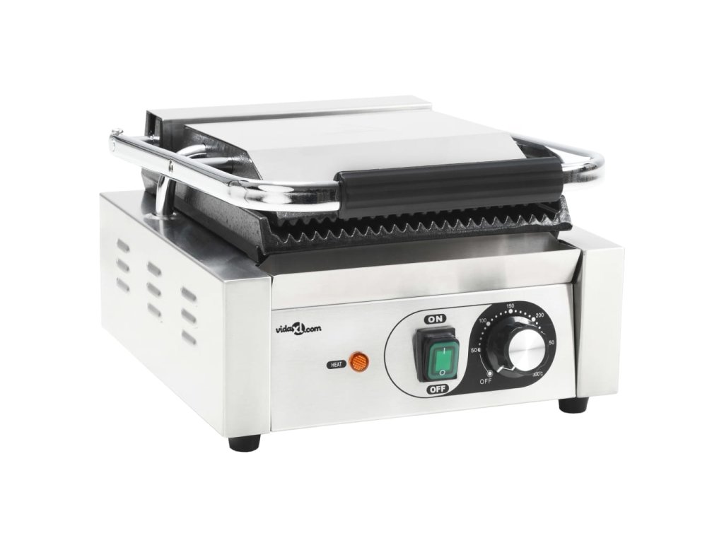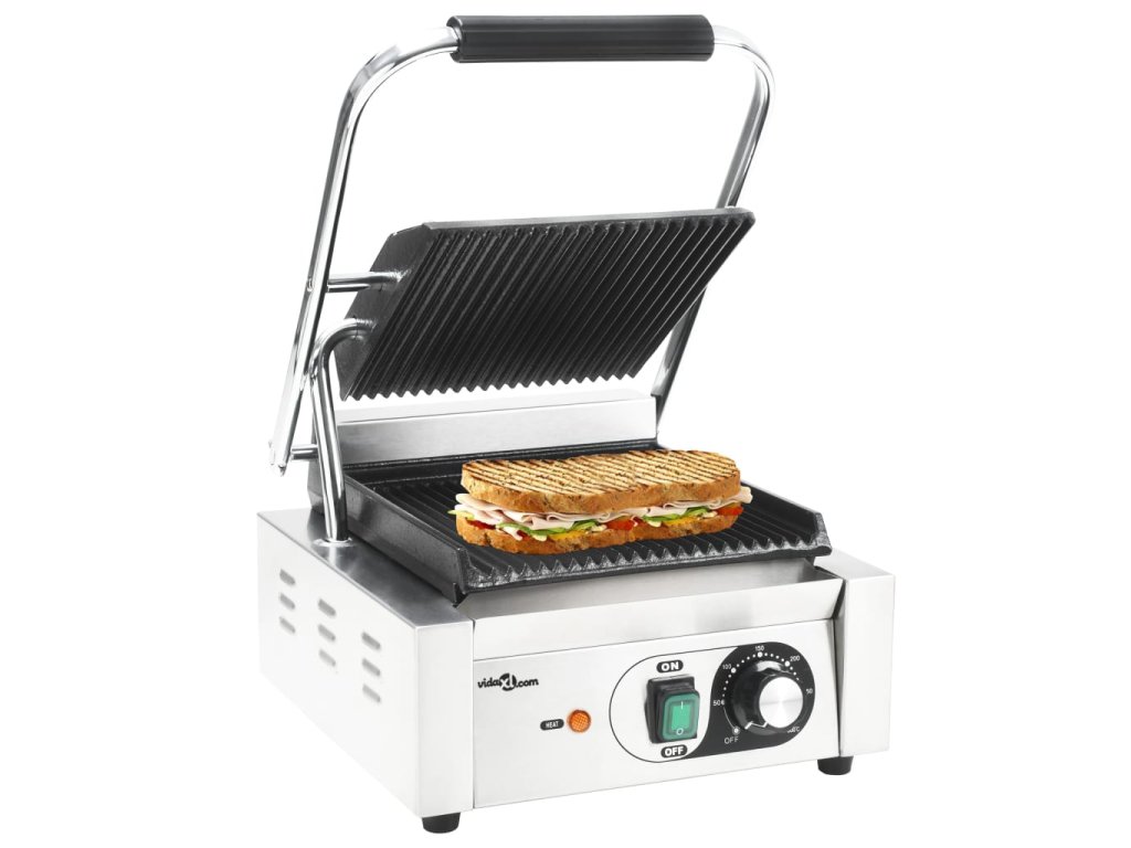 Náš drážkovaný panini gril je praktické zariadenie na rýchle ugrilovanie panini, sendvičov, hamburgerov, kuraciny, zeleniny, atď.