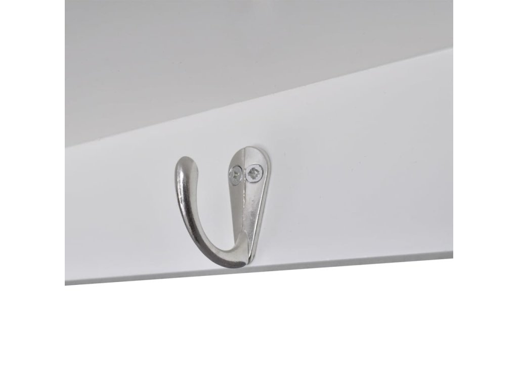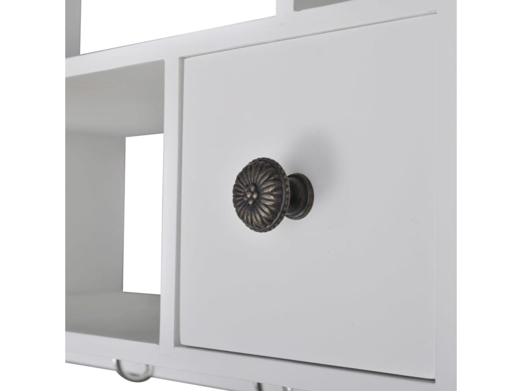 Skrinka je vyrobená z kvalitného dreva, a je navrhnutá tak, aby odolávala vlhkému prostrediu. Biely náter sa dá ľahko očistiť pomocou navlhčenej handričky.