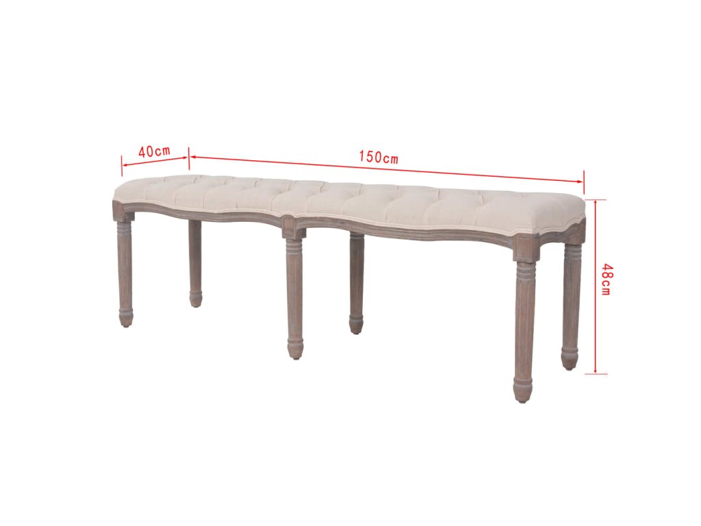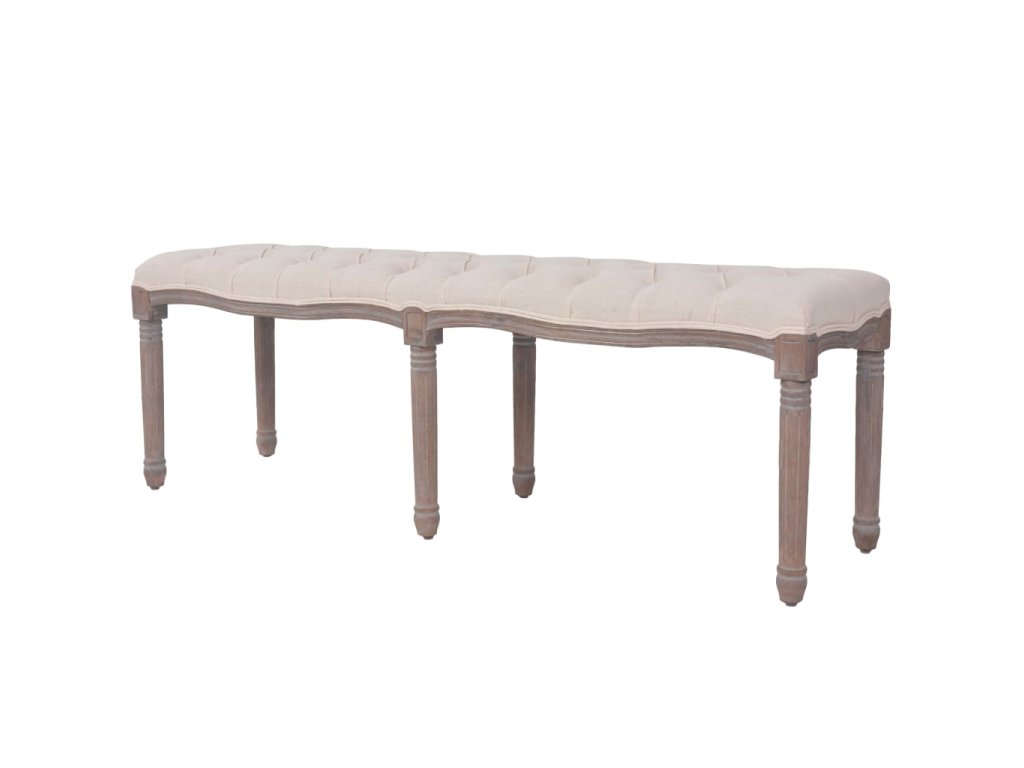 Táto klasicky navrhnutá lavica má dokonalý vzhľad vďaka svojmu rámu z masívneho dreva s lineárnym tvarom a stĺpovým nohám s drážkami. Kvalitné a nahusto polstrované plátnové čalúnenie je veľmi pohodlné a štýlové.