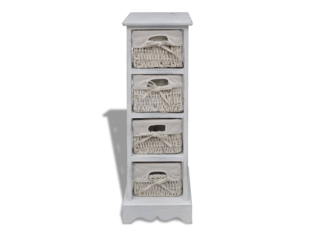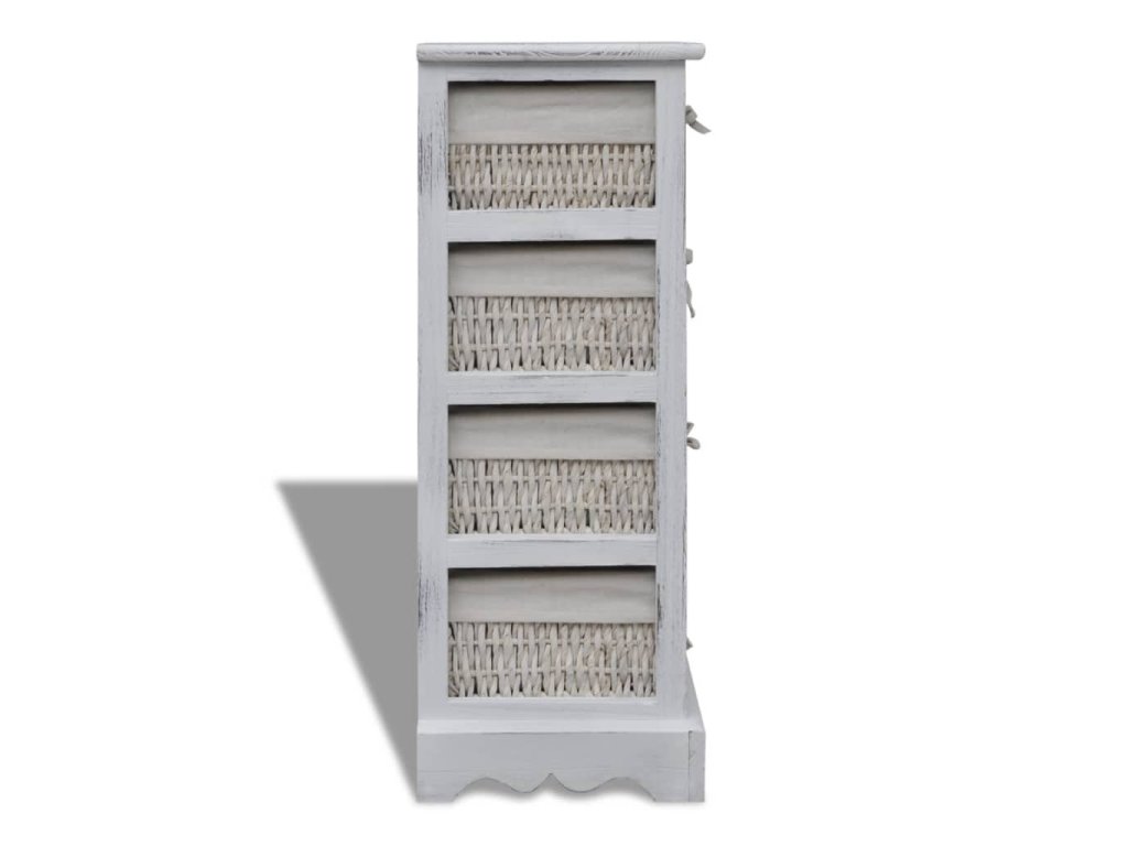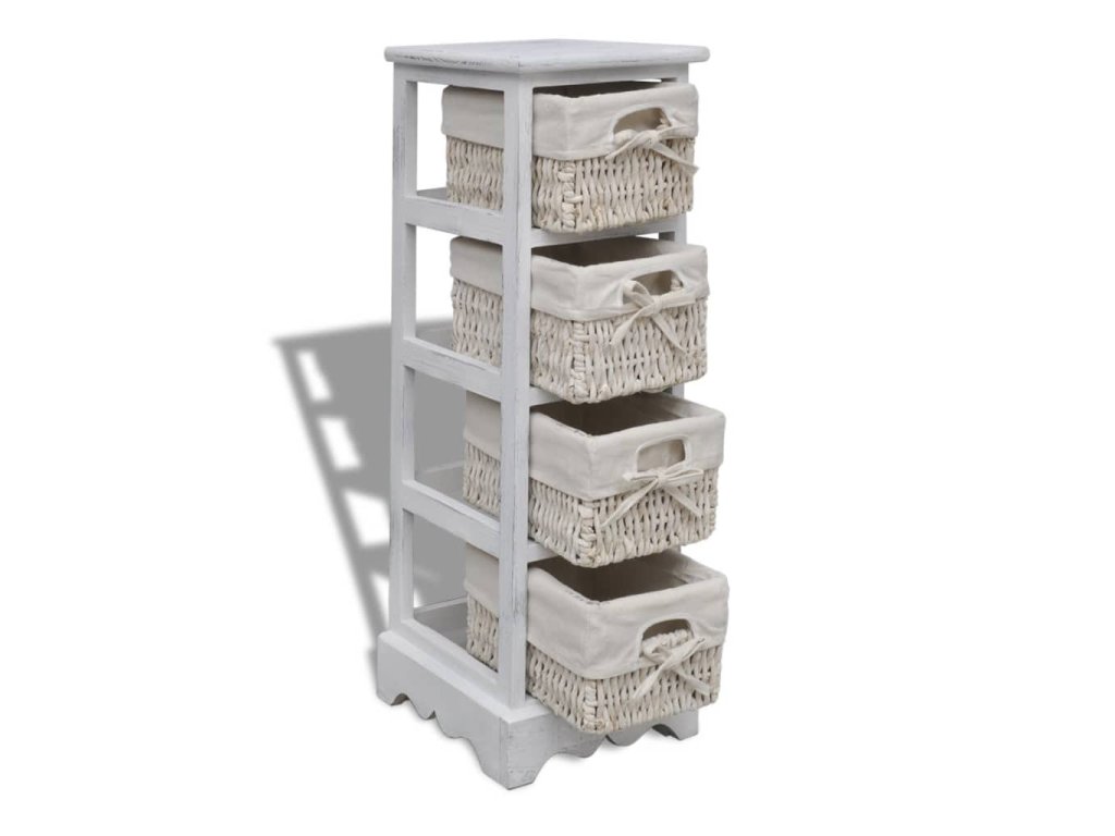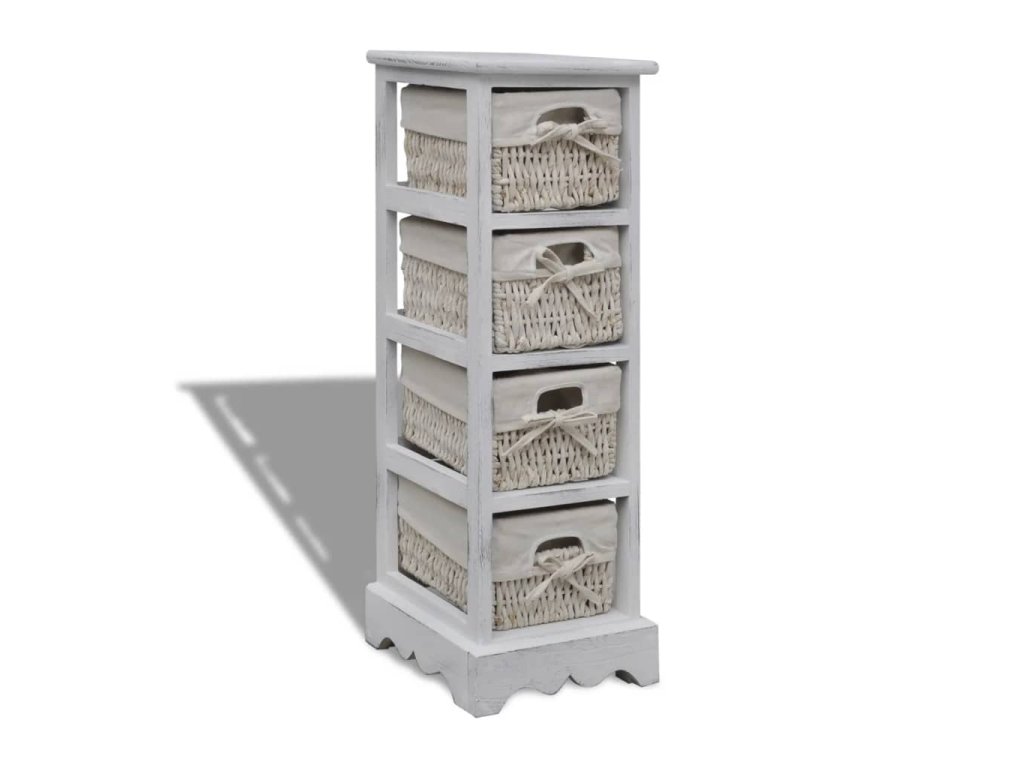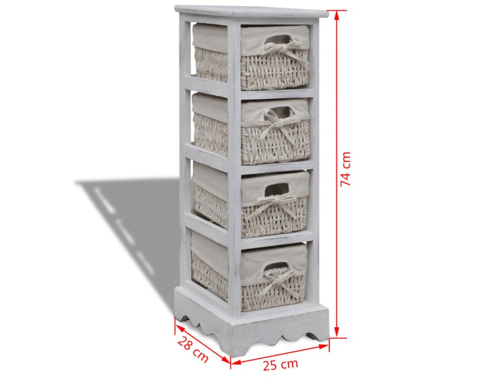 Drevený regál sa dodáva spolu so štyrmi prútenými košíkmi, a tak poskytuje dostatok úložného priestoru na vaše cennosti a zároveň vášmu príbytku dodá nádych country štýlu. Tento drevený regál sa zaručene stane jedným z najobľúbenejších kúskov nábytku, nech ho umiestnite do ktorejkoľvek miestnosti.