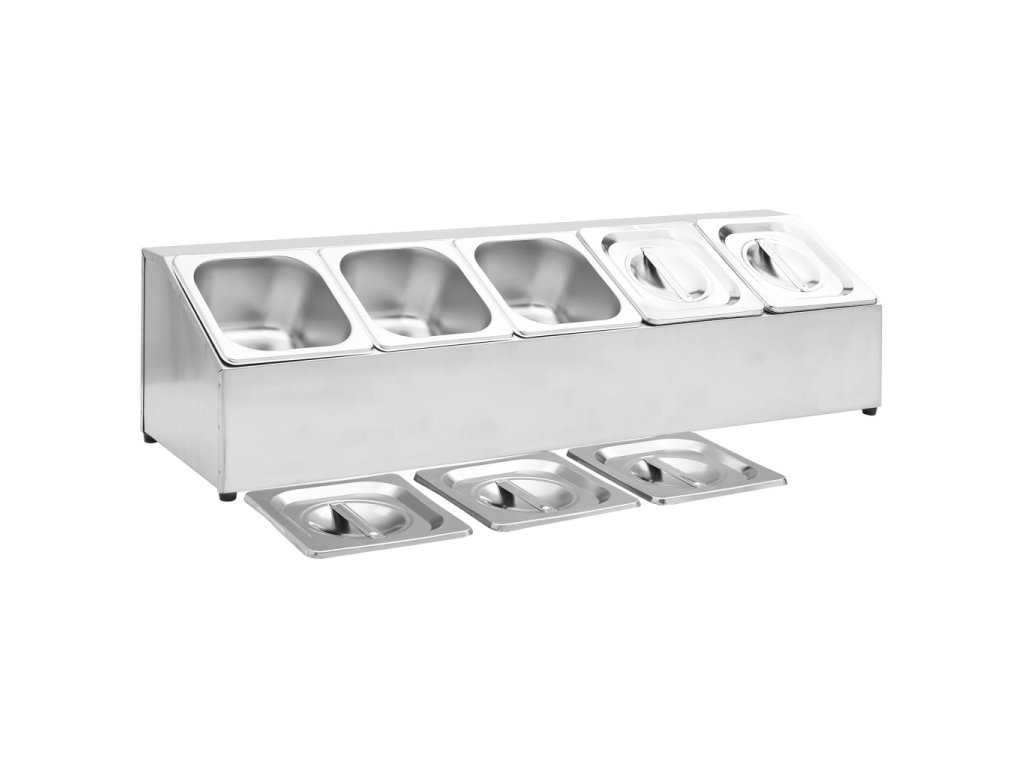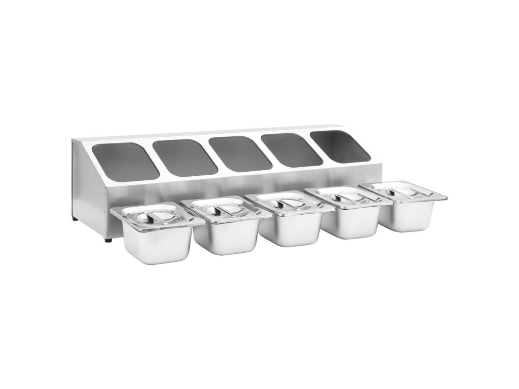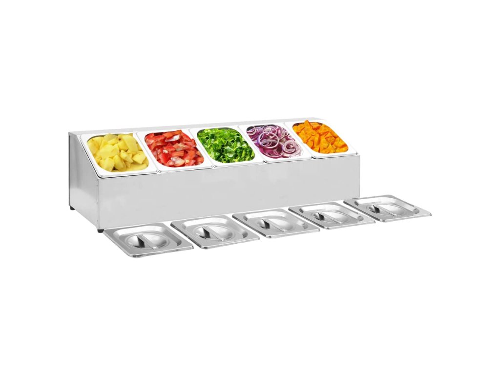 - Obsahuje 5 nádob GN 1/6 s vhodnými vrchnákmi