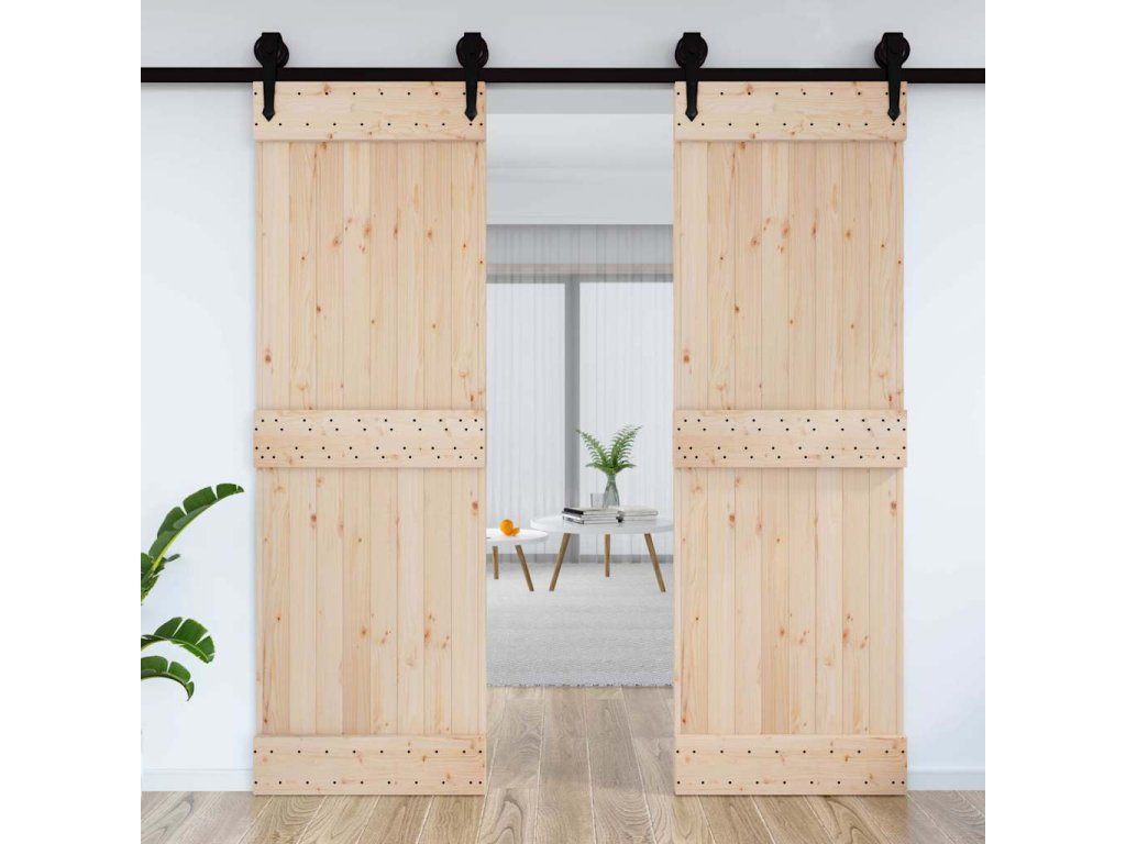 - Masívne borovicové drevo: Dvere sú vyrobené z masívneho borovicového dreva. Masívne borovicové drevo je krásny prírodný materiál. Borovicové drevo má rovnú štruktúru a uzly dodávajú materiálu jeho typický rustikálny vzhľad.