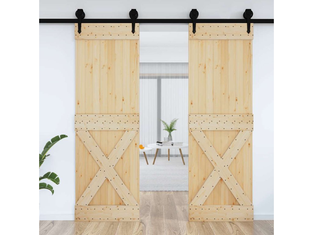 - Masívne borovicové drevo: Dvere sú vyrobené z masívneho borovicového dreva. Masívne borovicové drevo je krásny prírodný materiál. Borovicové drevo má rovnú štruktúru a uzly dodávajú materiálu jeho typický rustikálny vzhľad.